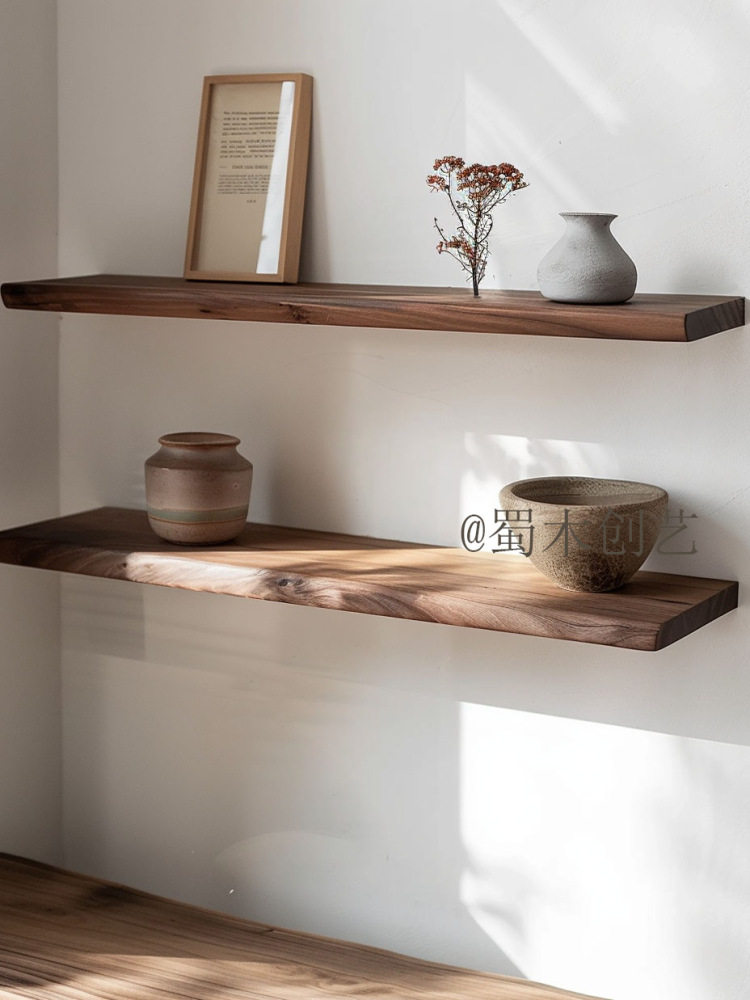 黑胡桃木色实木层板一字隔板置物搁架展示墙面摆收纳壁挂式墙书架