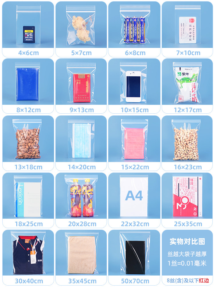自封袋透明加厚小号塑封口袋子密封袋食品PE大号保鲜袋塑料包装袋