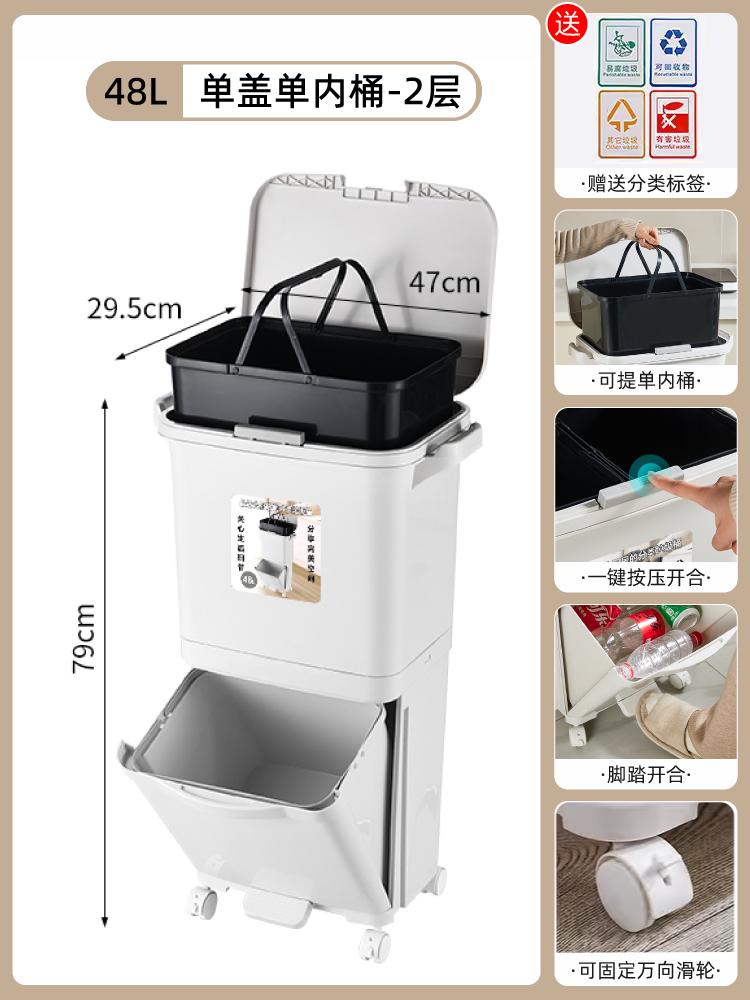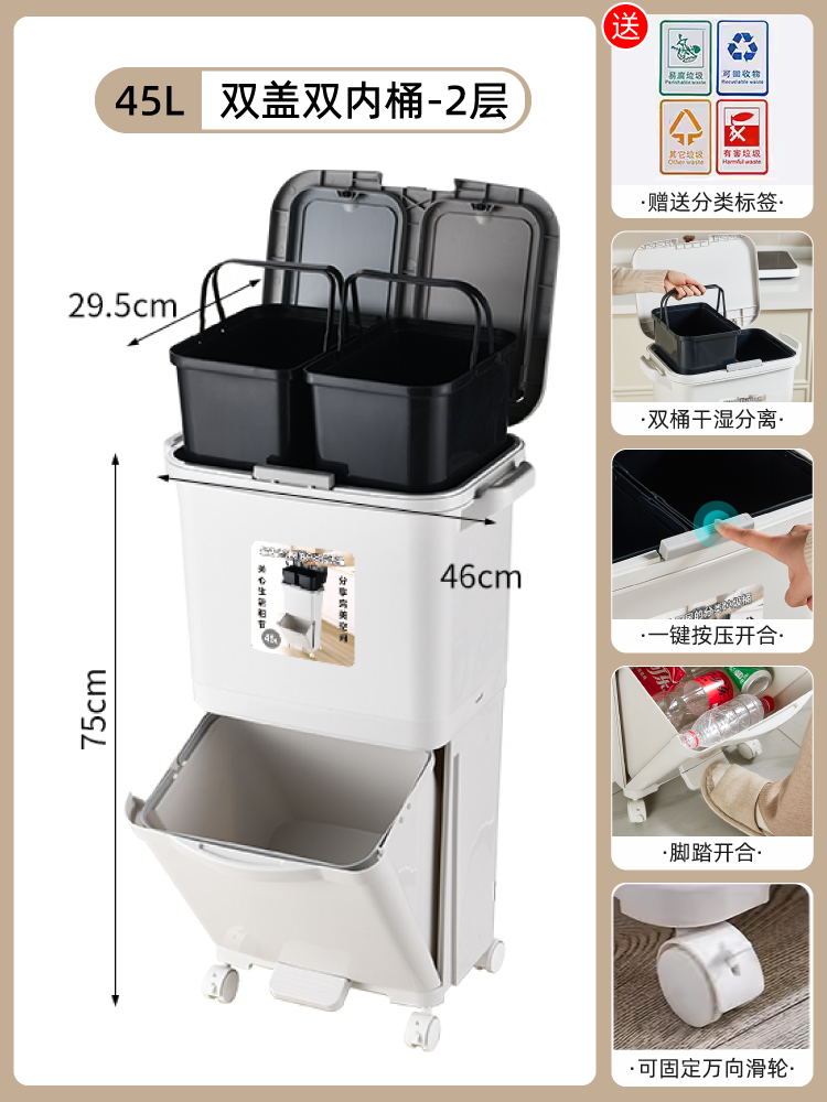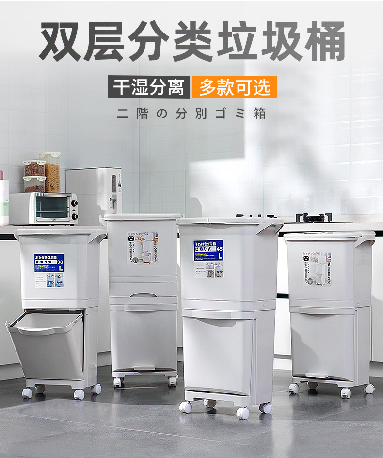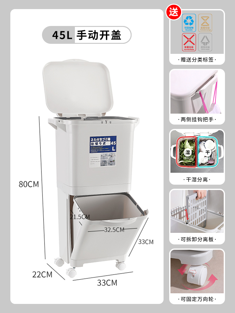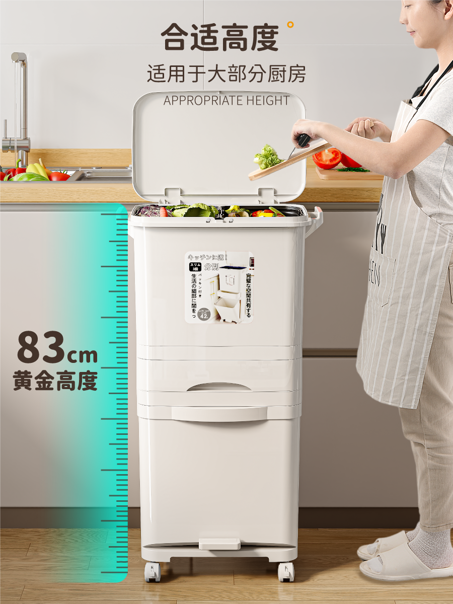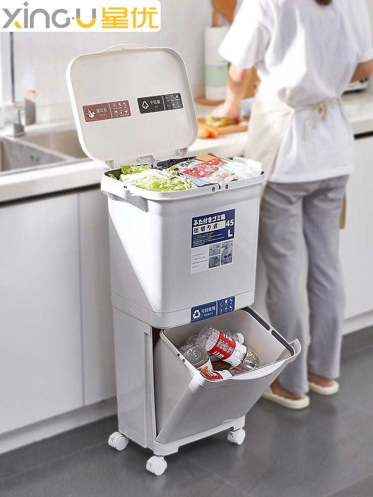 星优厨房垃圾桶家用带盖2025新款大容量双层厨余干湿分离分类日式