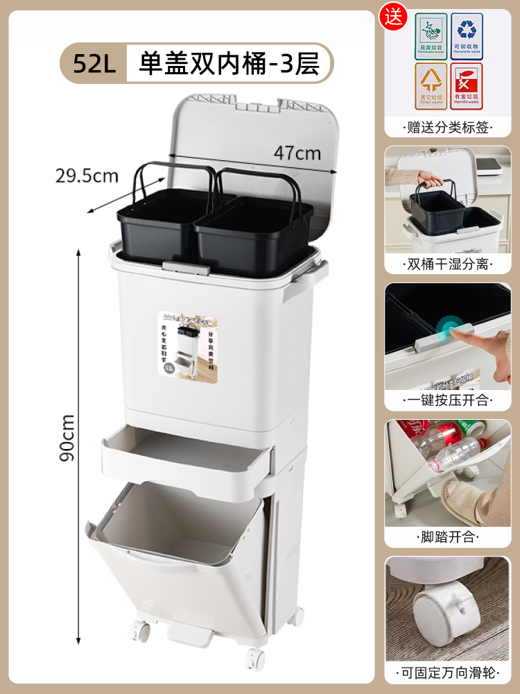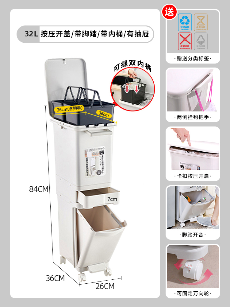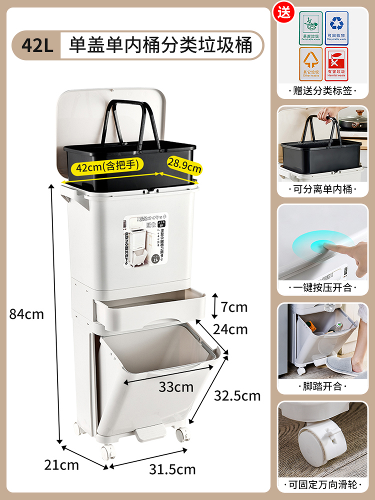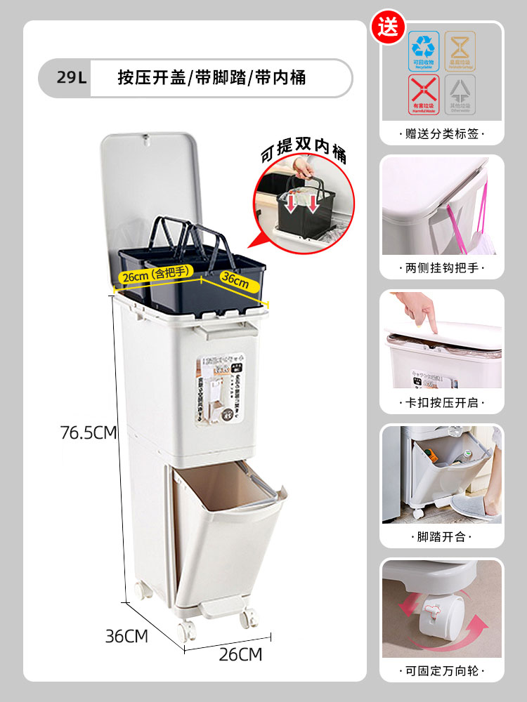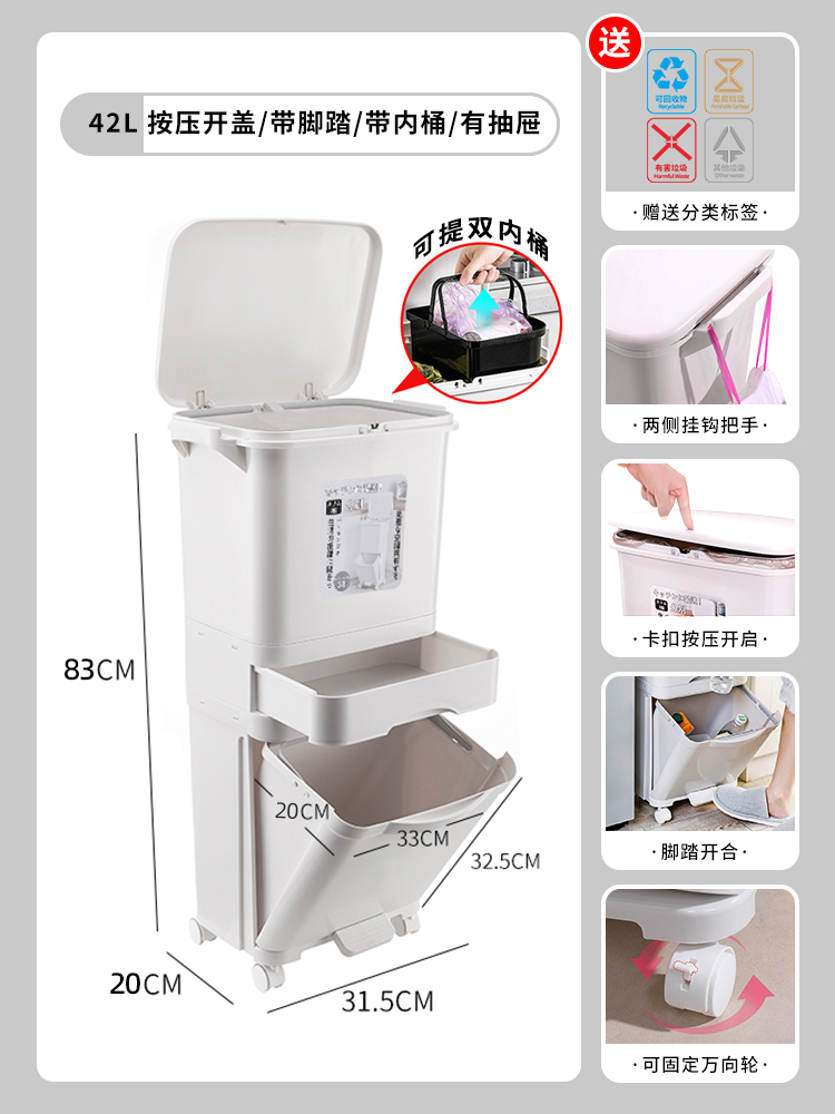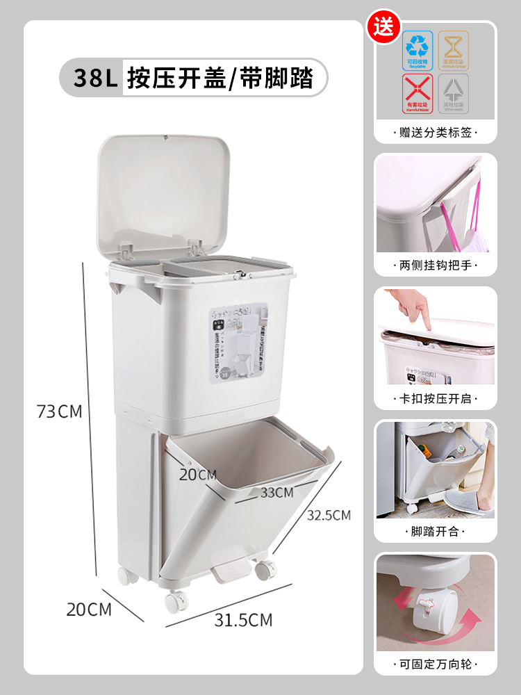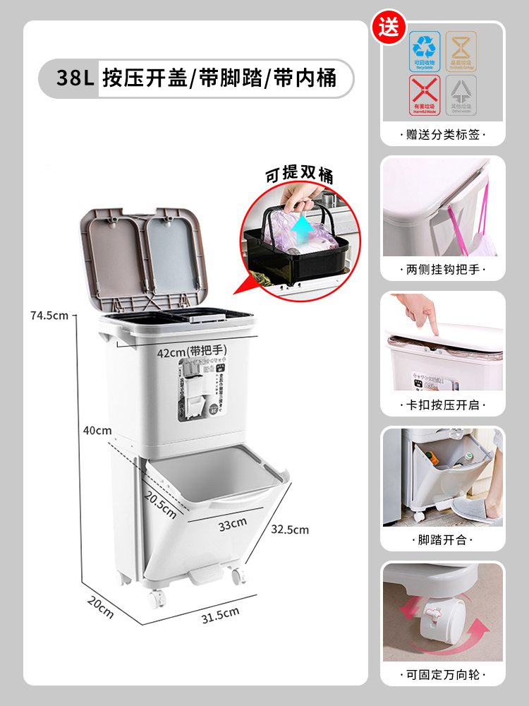 星优厨房垃圾桶家用带盖2025新款大容量双层厨余干湿分离分类日式