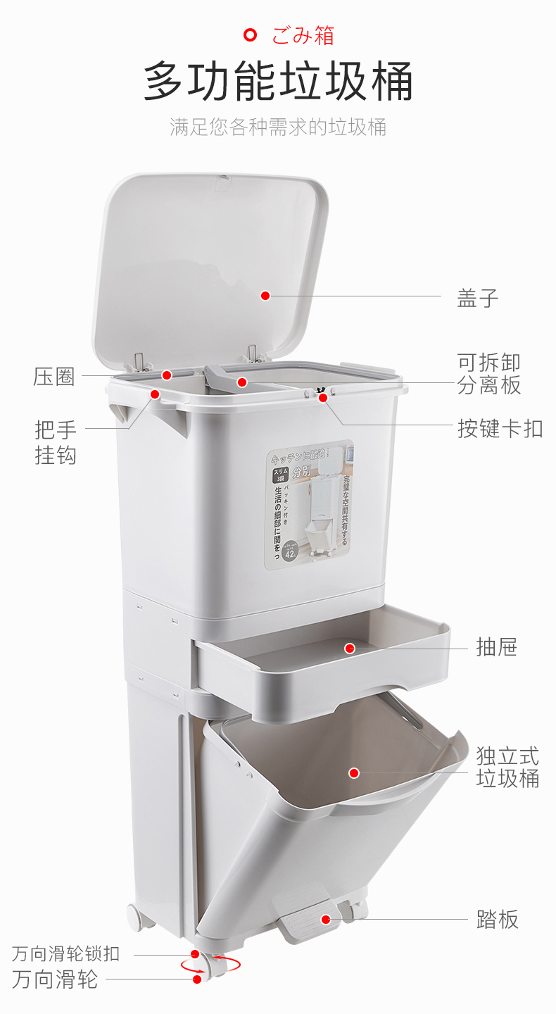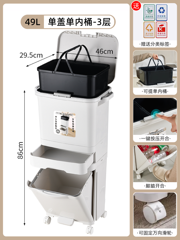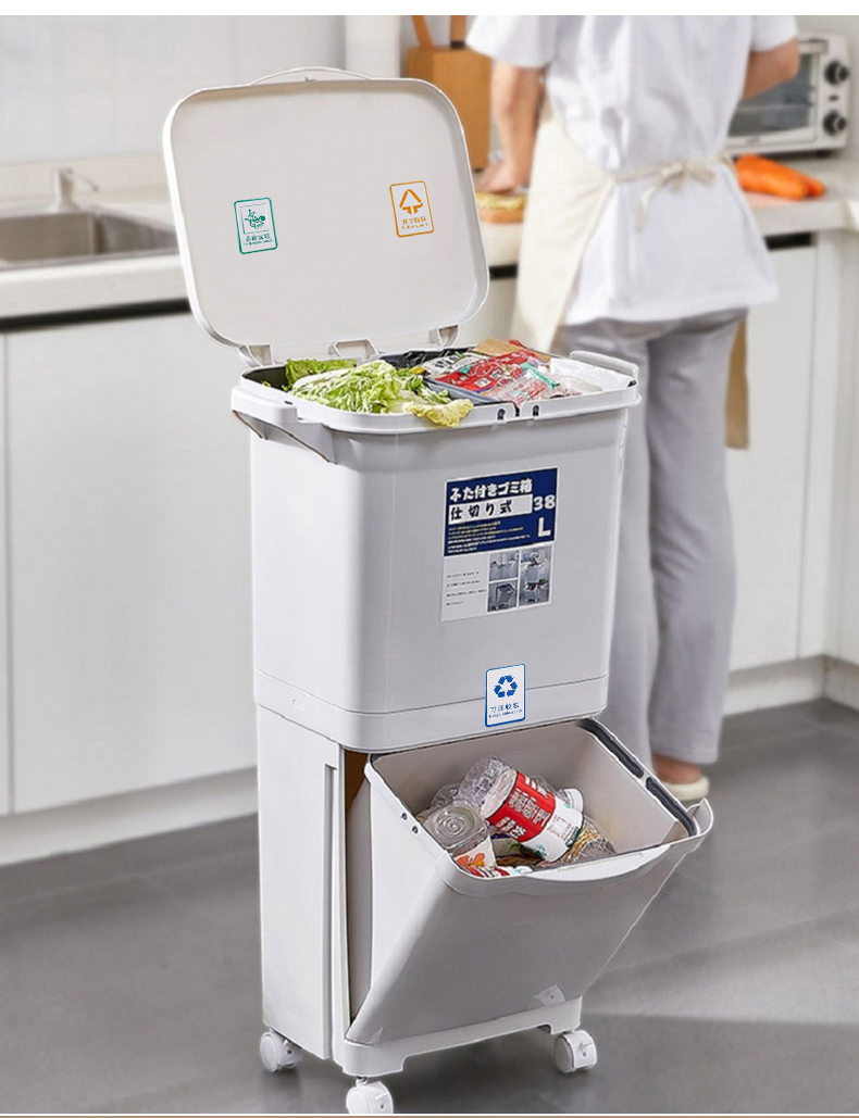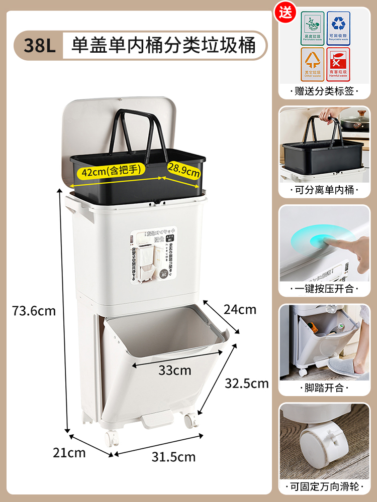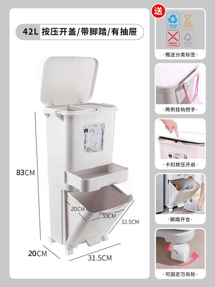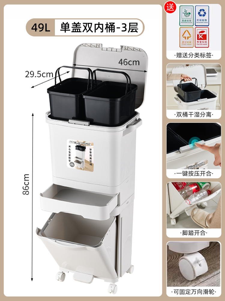 星优厨房垃圾桶家用带盖2025新款大容量双层厨余干湿分离分类日式