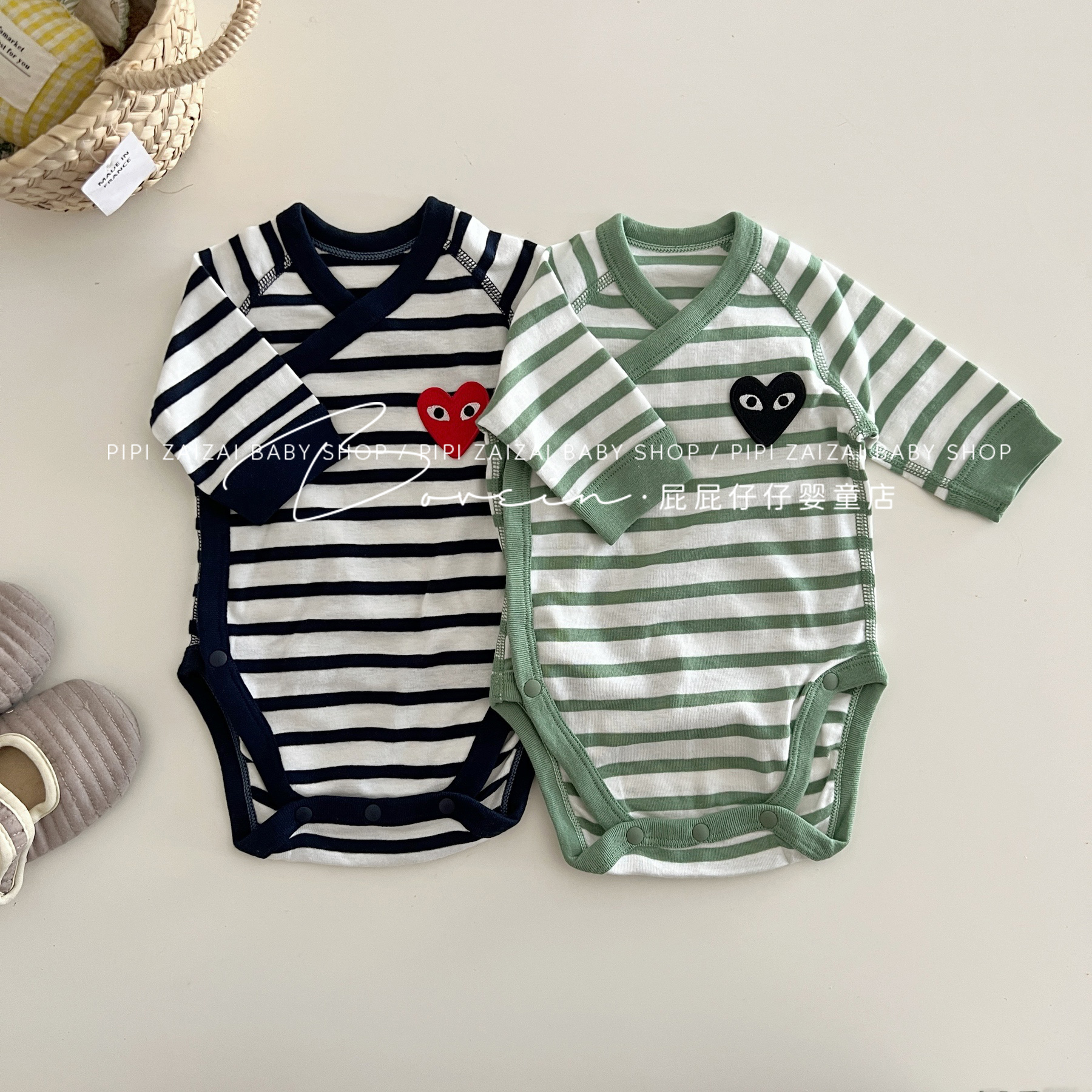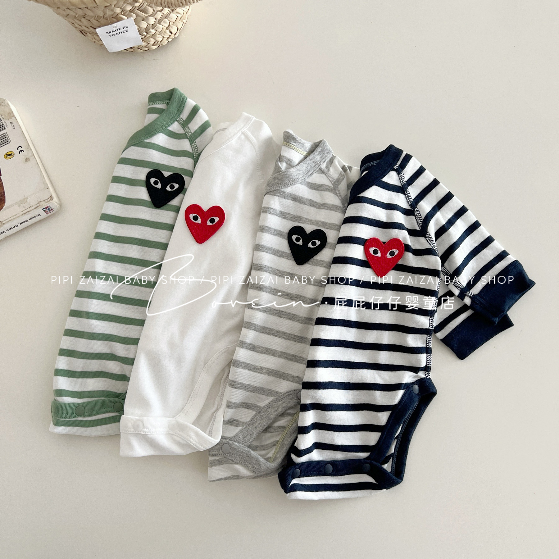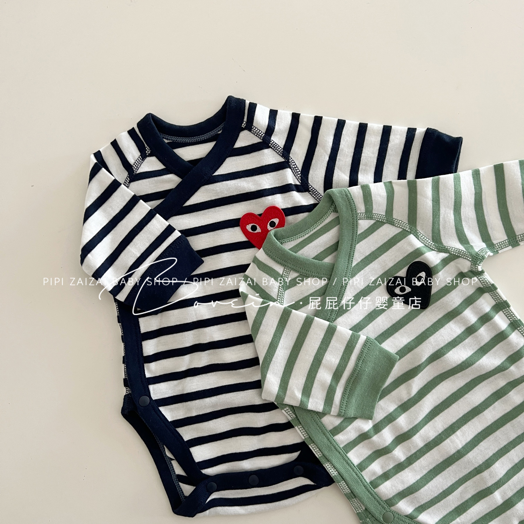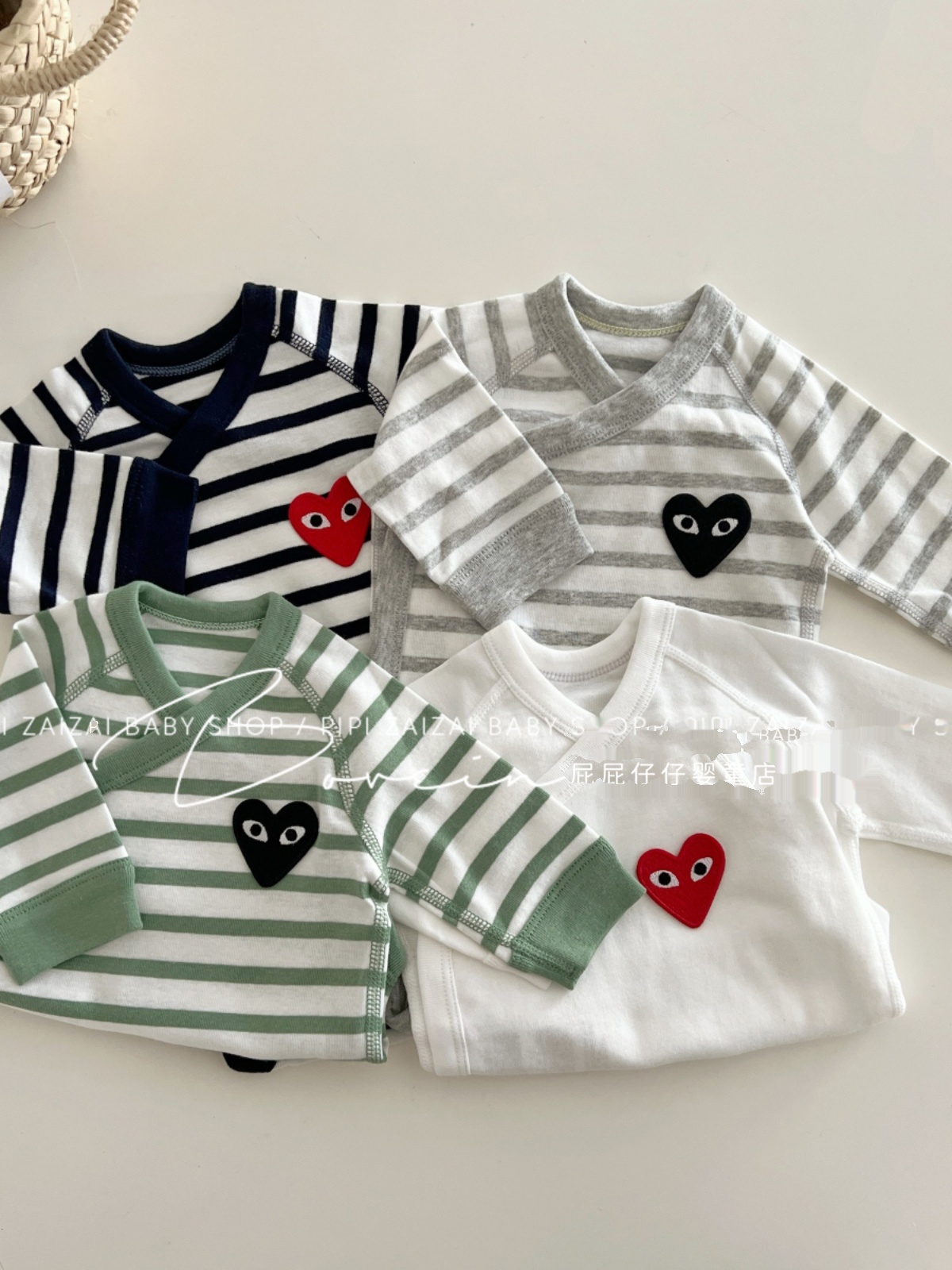 婴儿包屁衣新生儿衣服长袖春秋条纹爱心连体衣和尚服宝宝三角哈衣