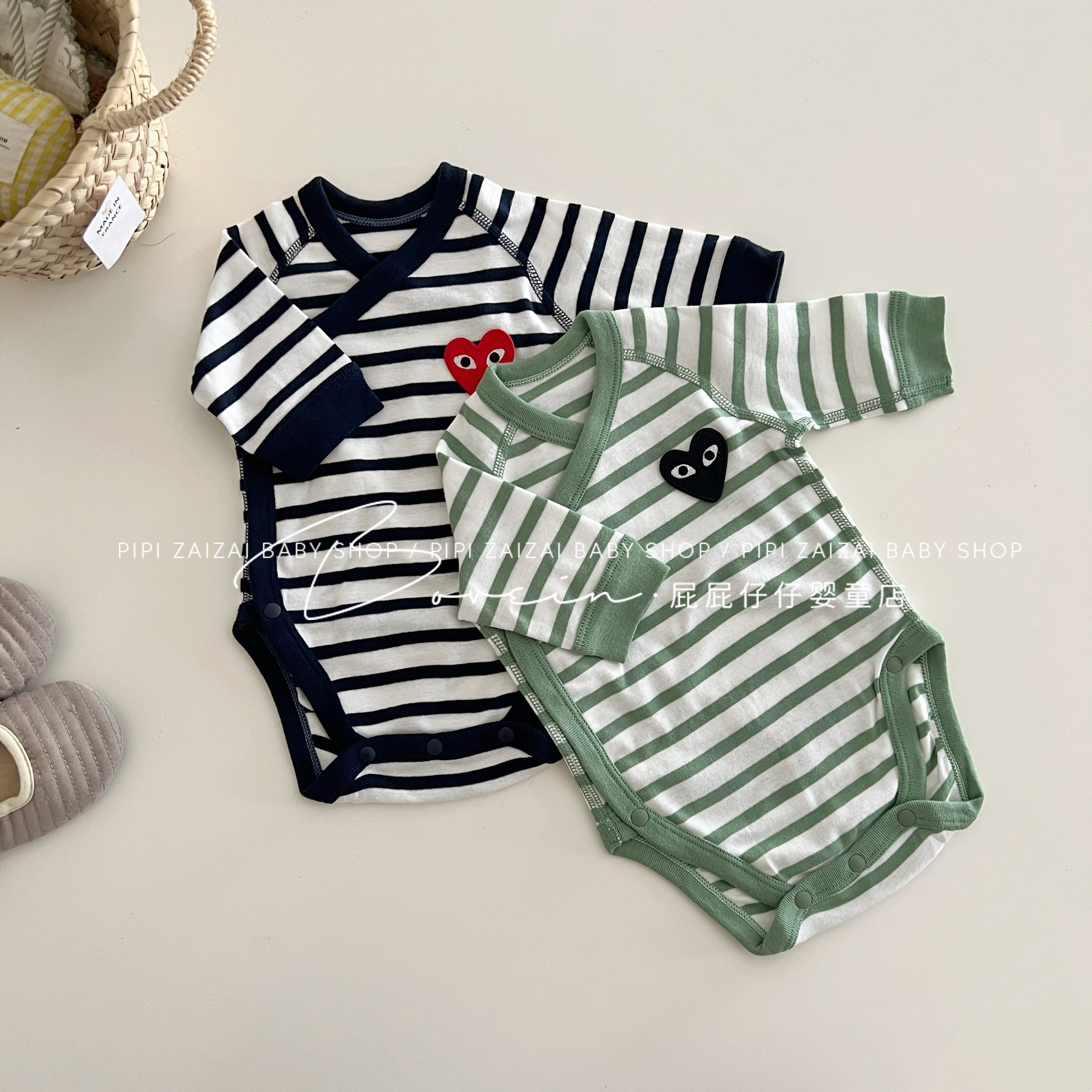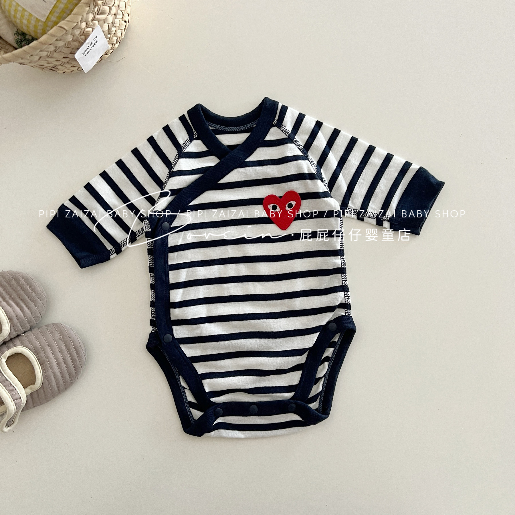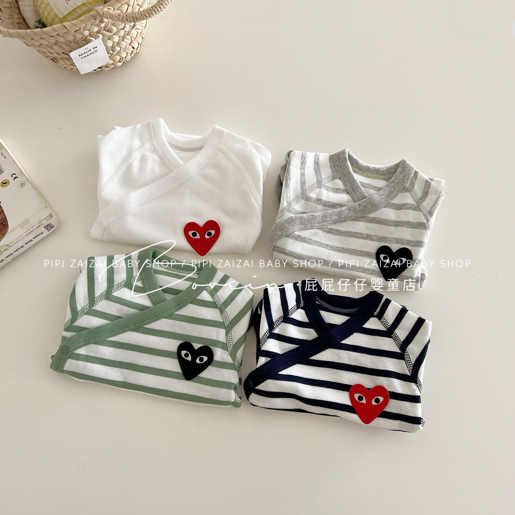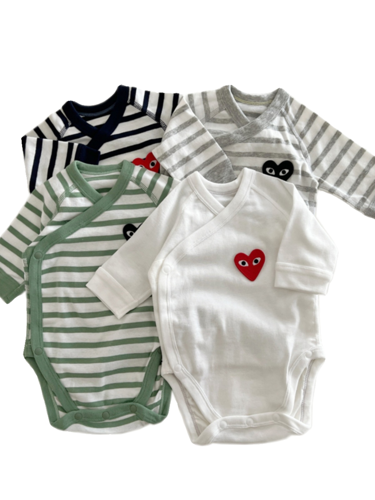 婴儿包屁衣新生儿衣服长袖春秋条纹爱心连体衣和尚服宝宝三角哈衣