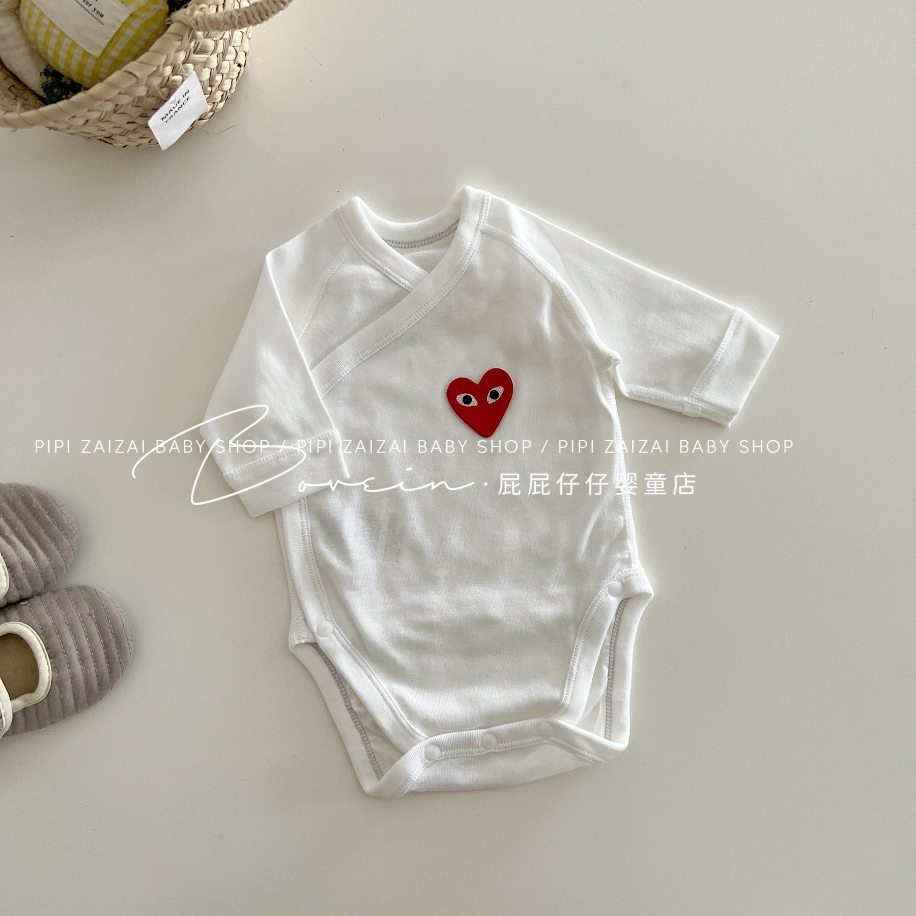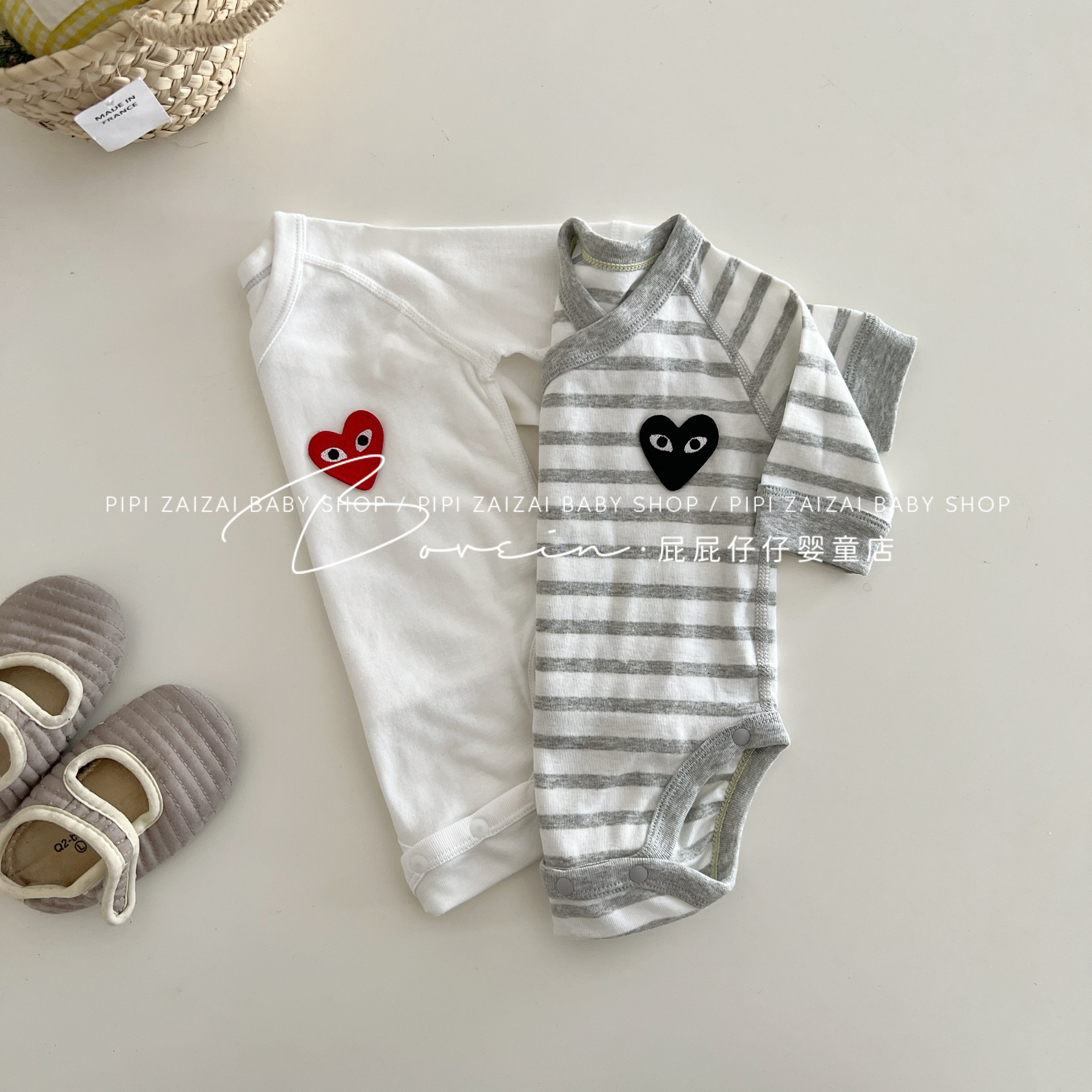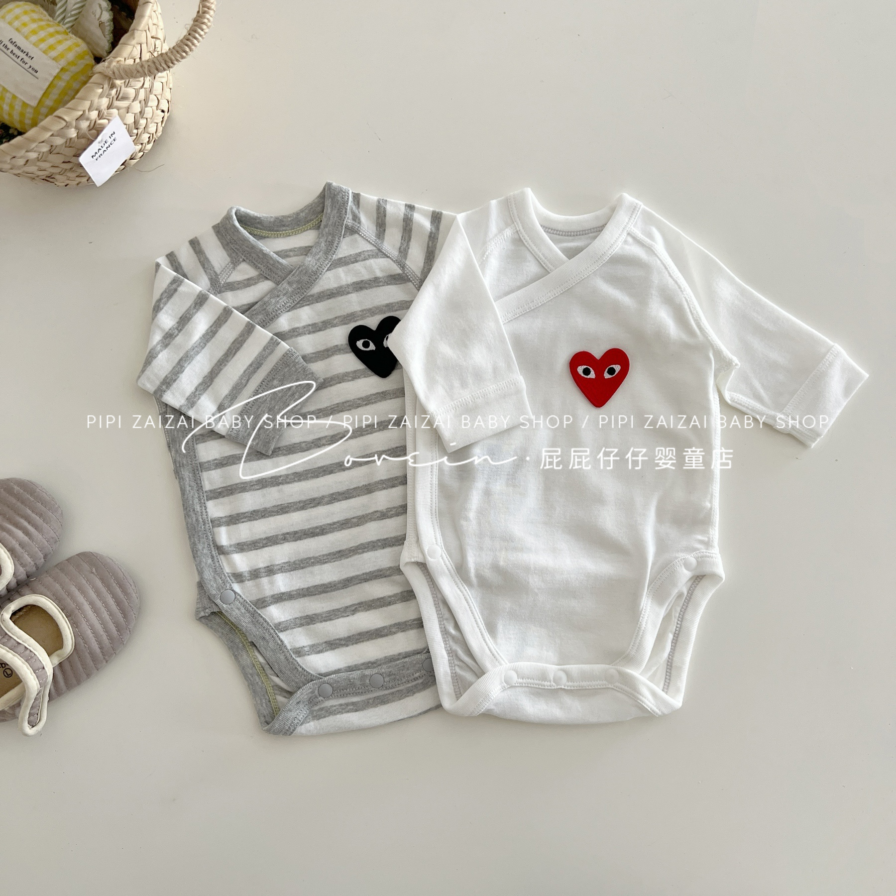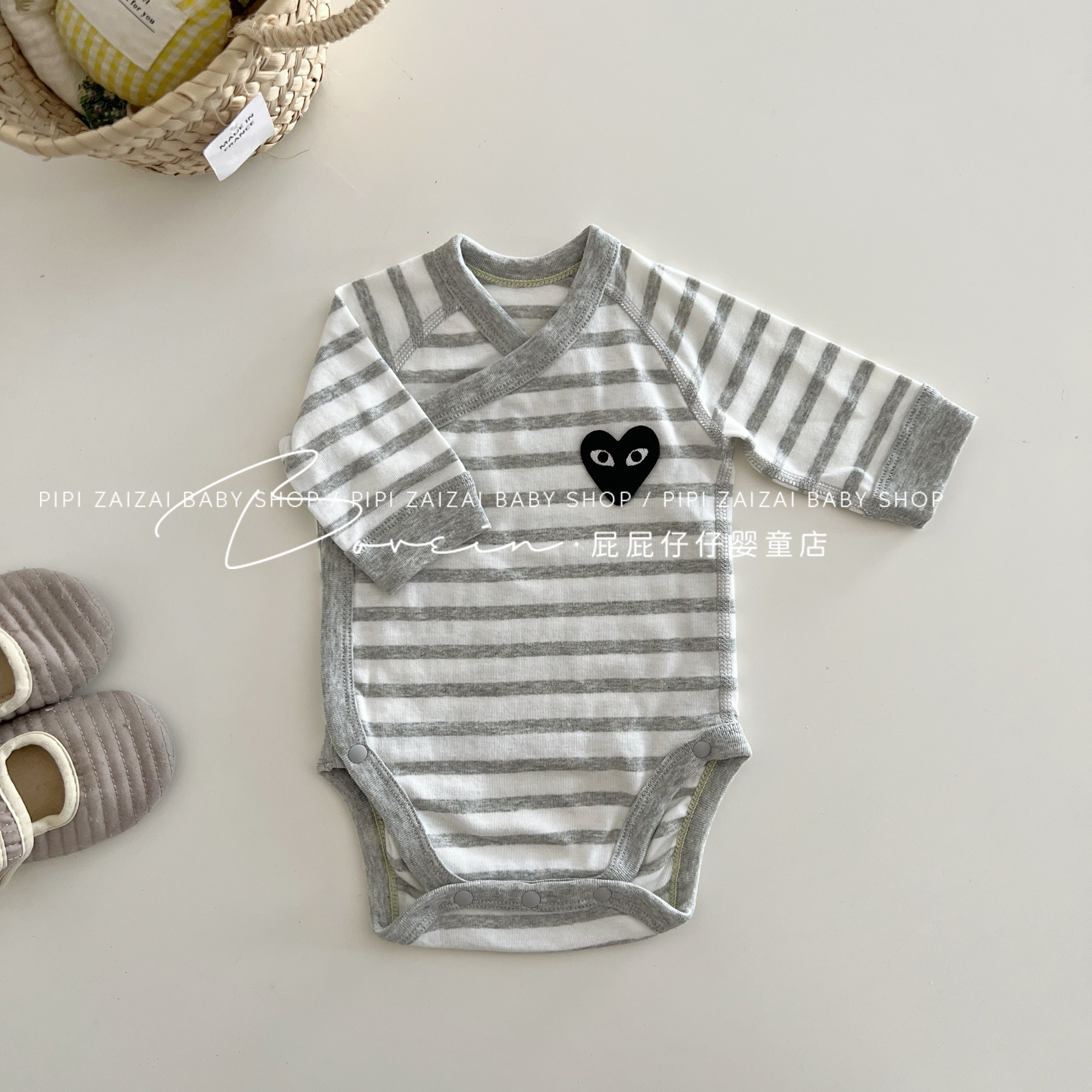 婴儿包屁衣新生儿衣服长袖春秋条纹爱心连体衣和尚服宝宝三角哈衣