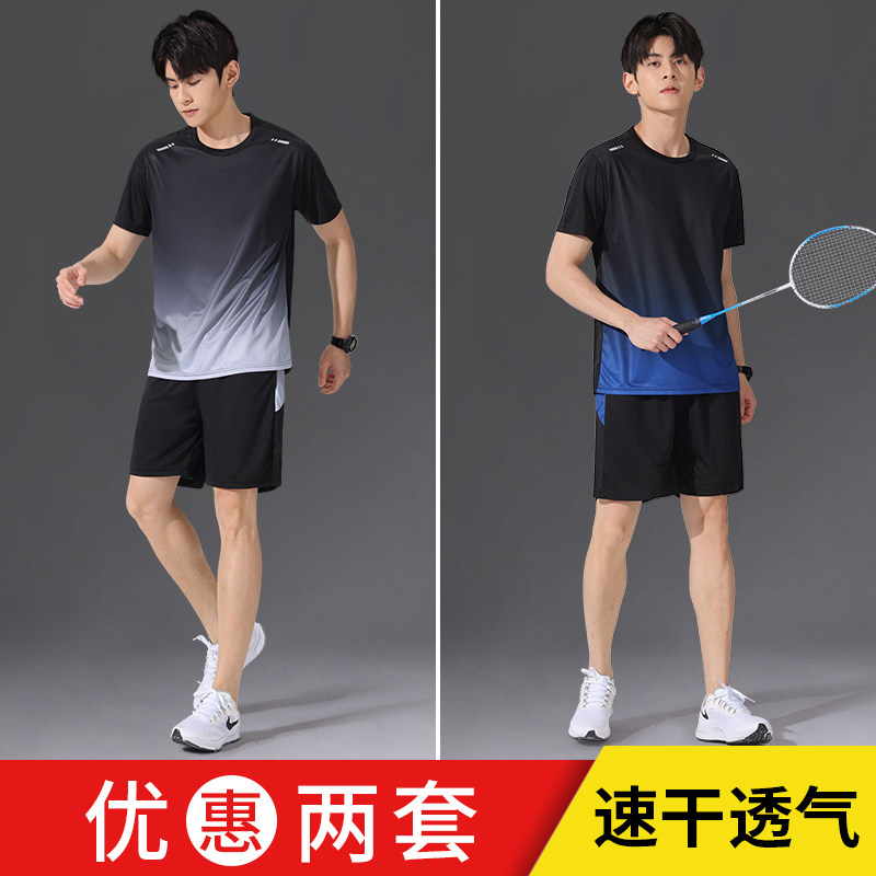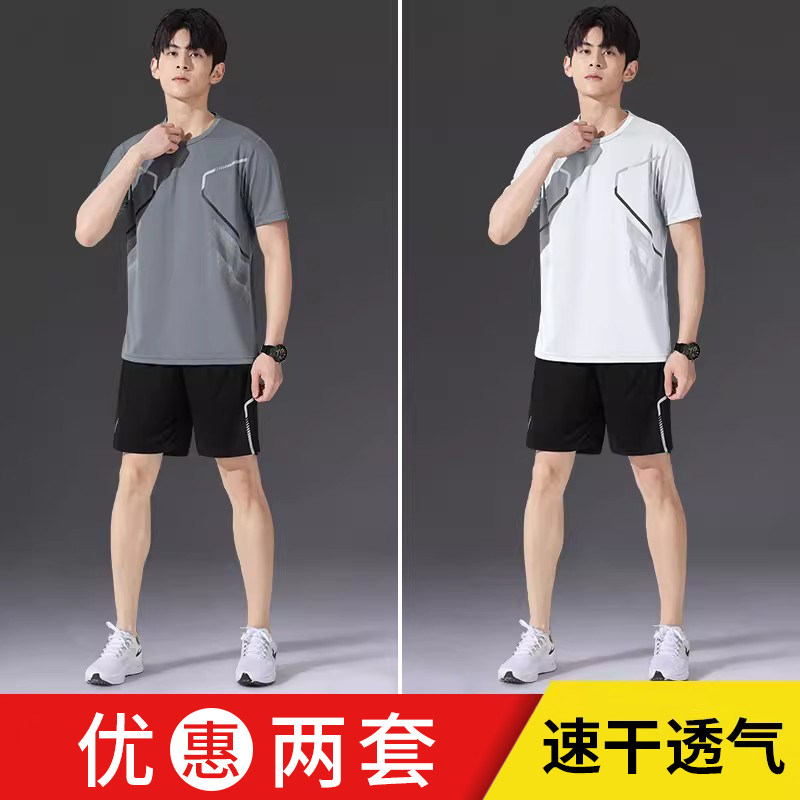 运动套装男速干衣冰丝T恤短袖短裤跑步新款夏季健身衣服羽毛球服