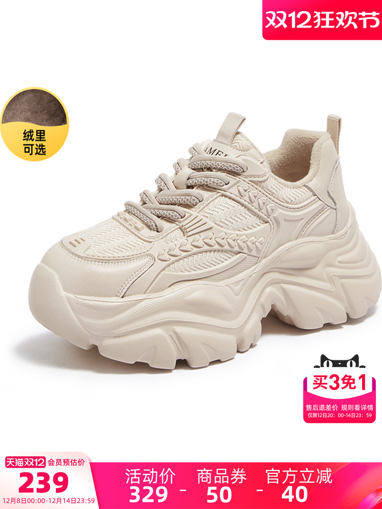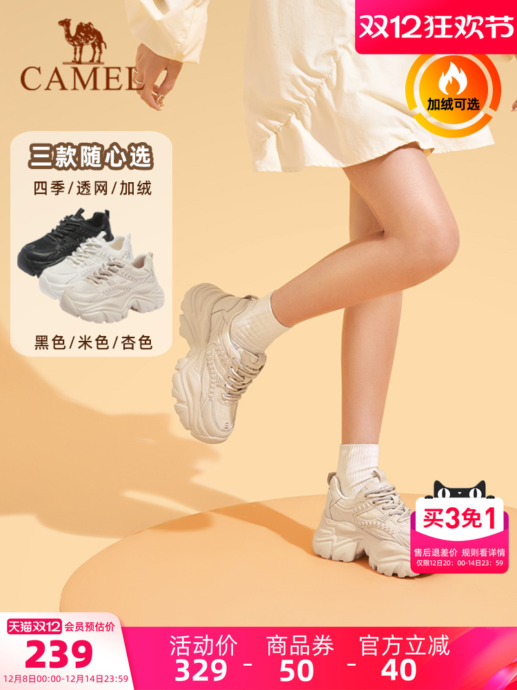 骆驼老爹鞋女鞋2025秋季新款透气运动鞋女款复古加绒厚底休闲鞋子