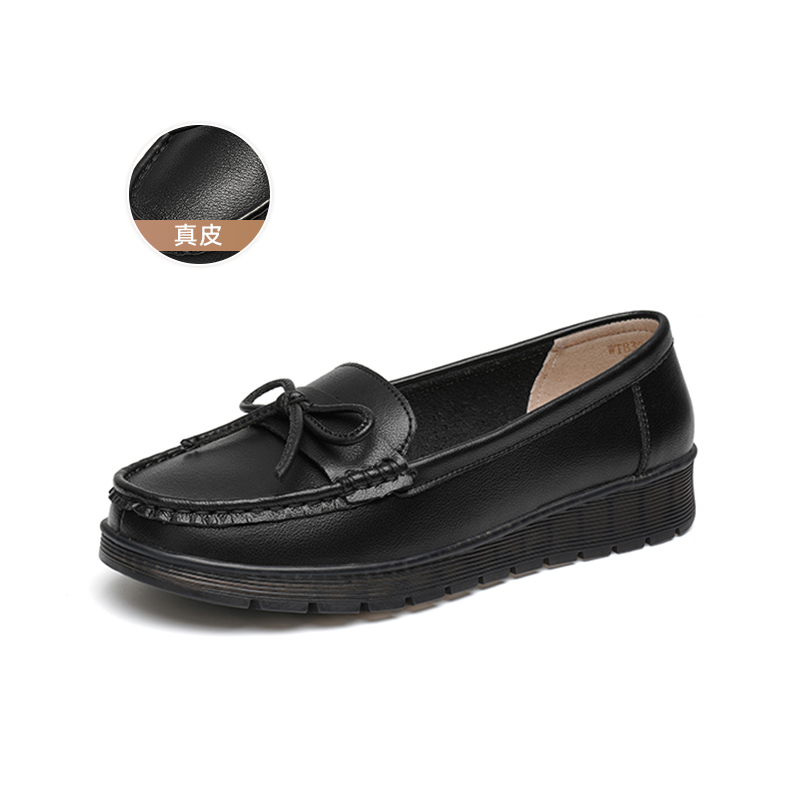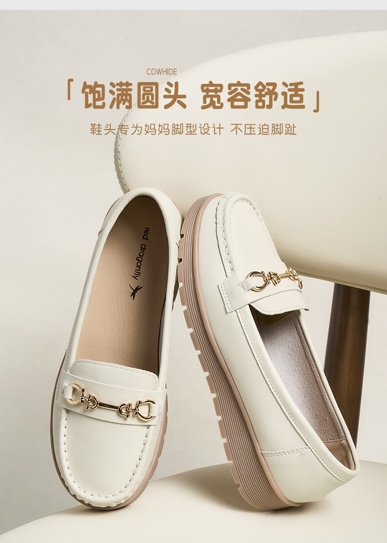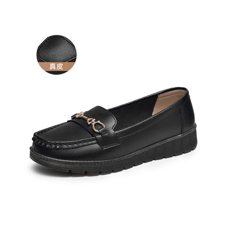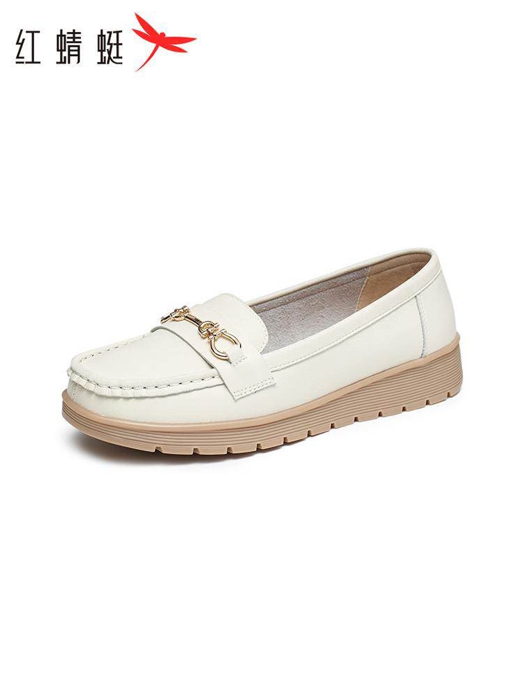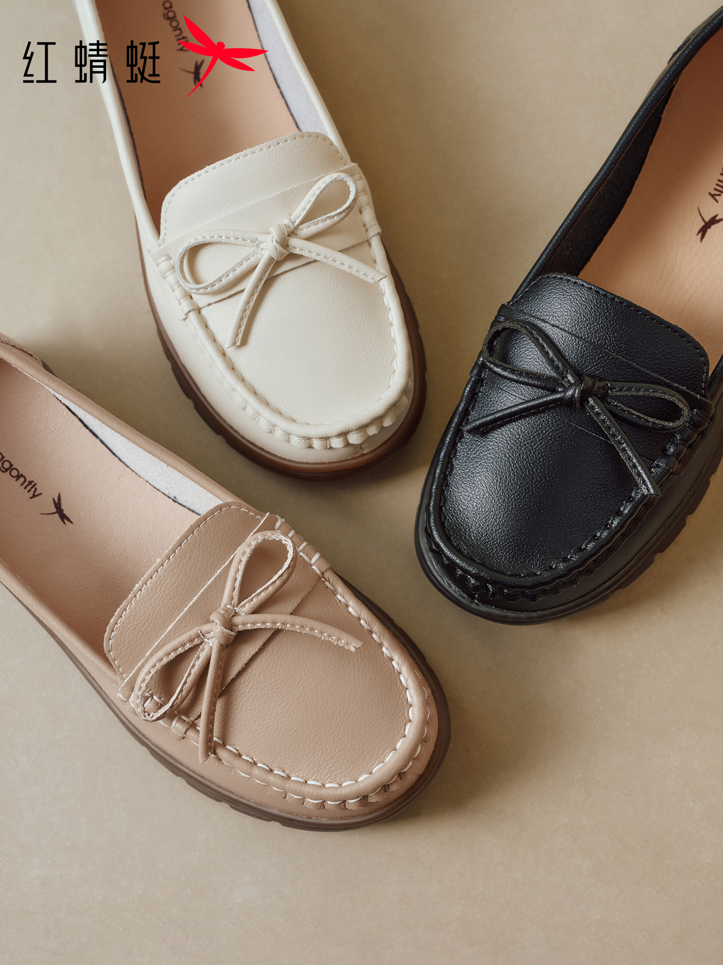 红蜻蜓妈妈鞋子秋季平底女鞋中老年大码鞋子舒适不累脚皮鞋女单鞋