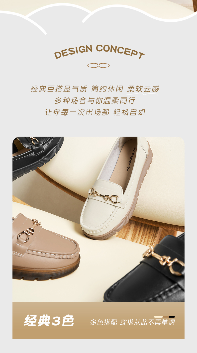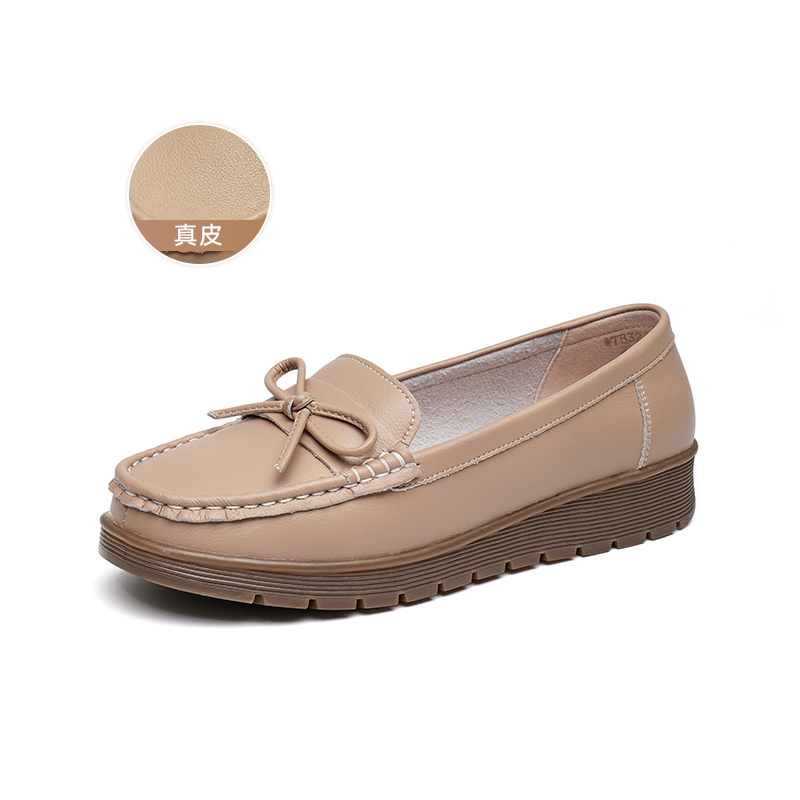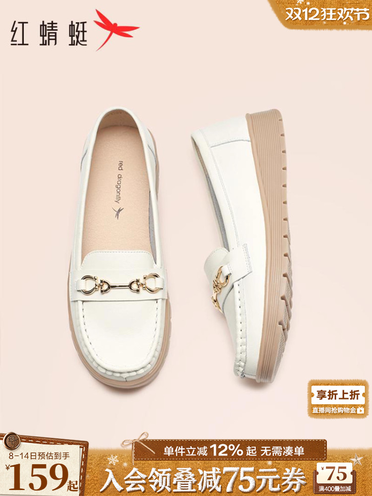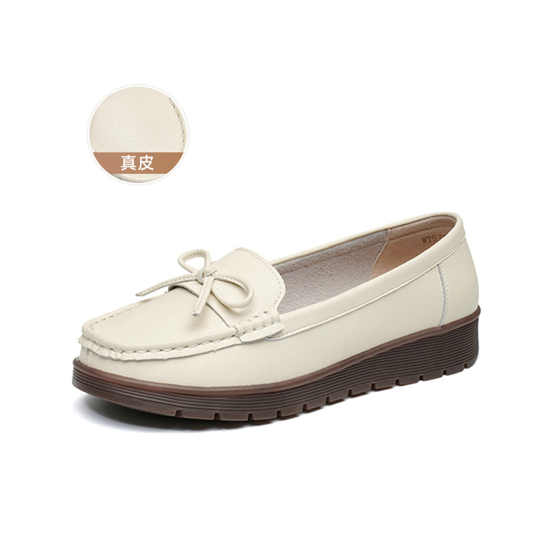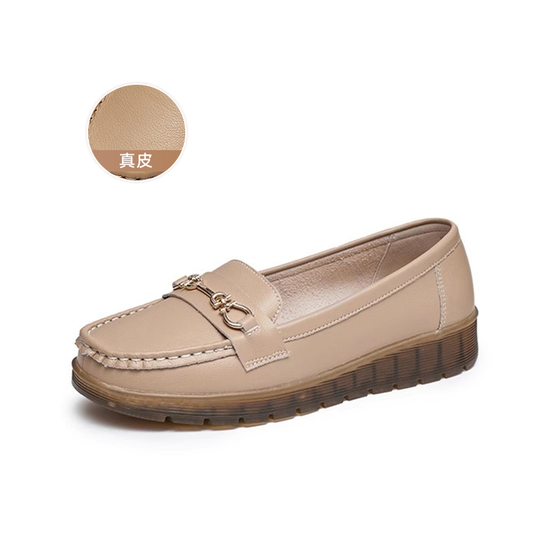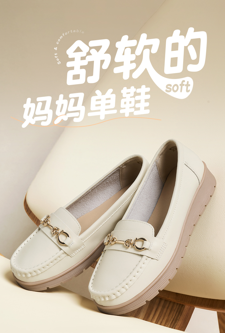 红蜻蜓妈妈鞋子秋季平底女鞋中老年大码鞋子舒适不累脚皮鞋女单鞋