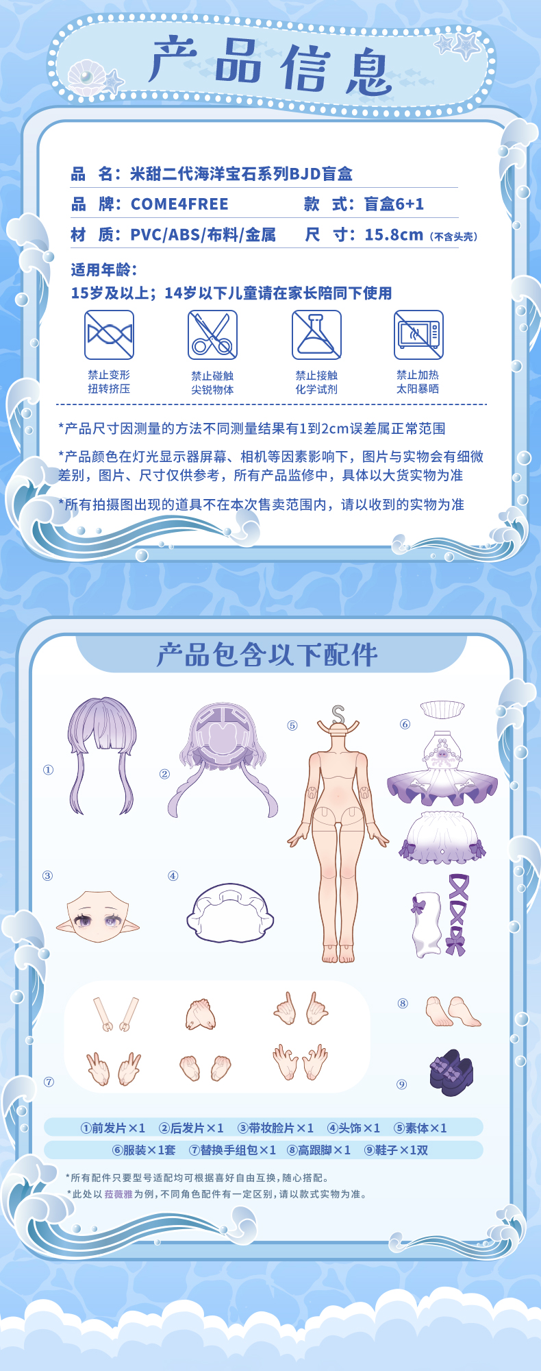 COME4FREE米甜【海洋宝石】8分可动人偶换装BJD二代娃娃盲盒手办