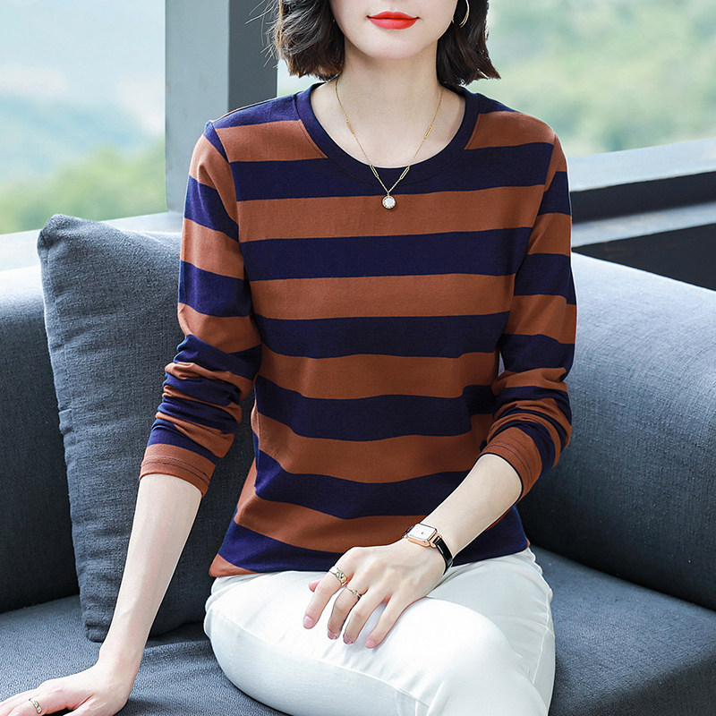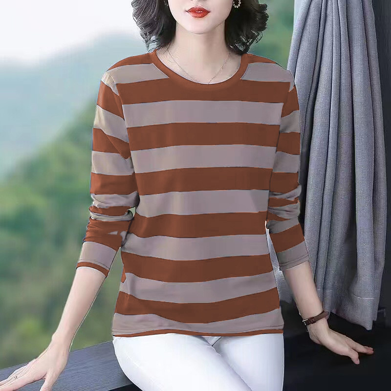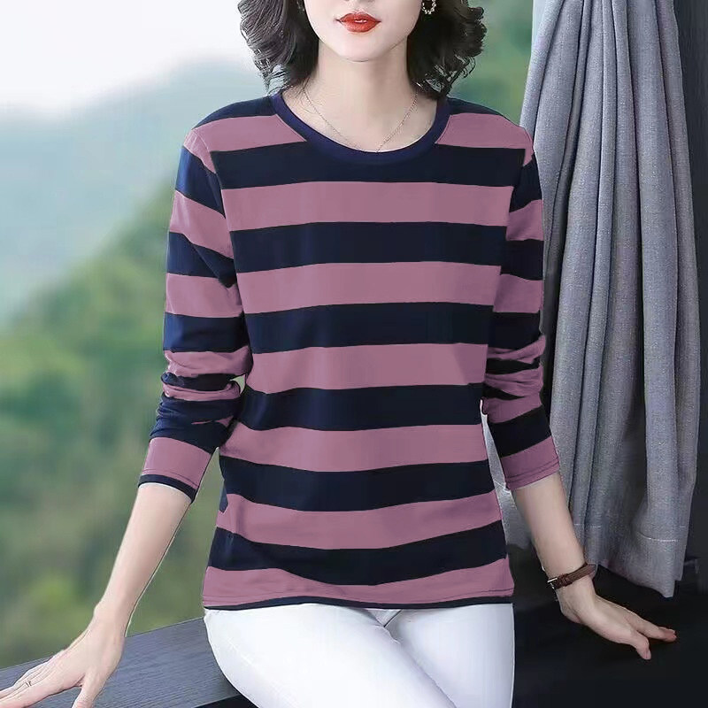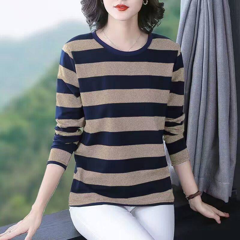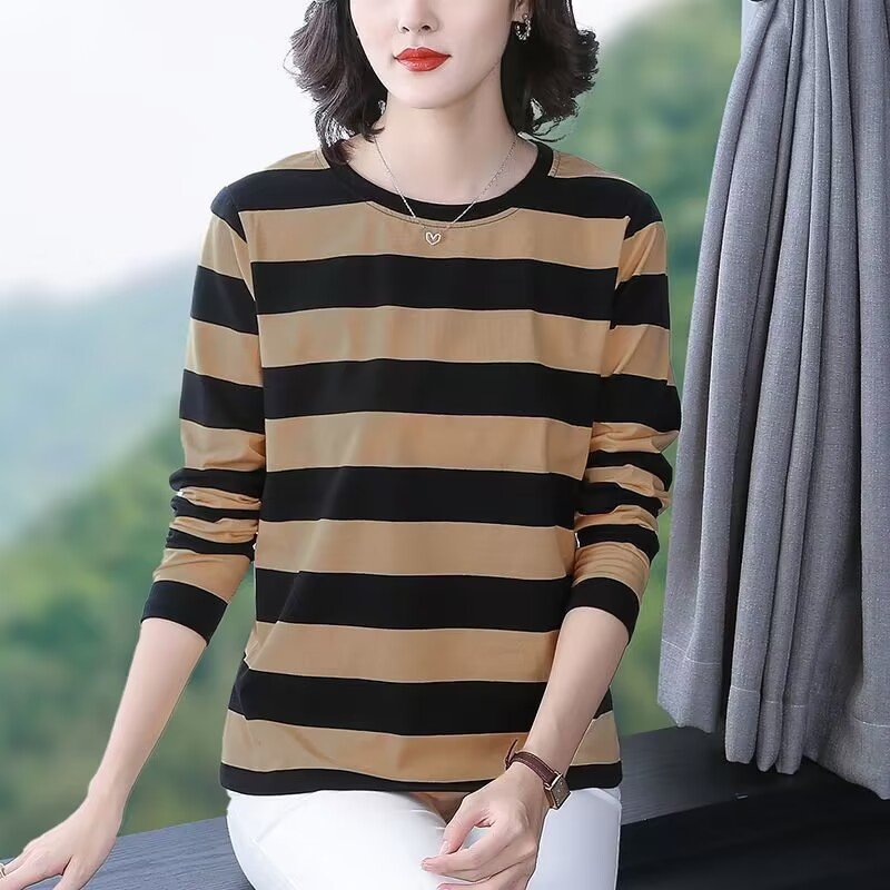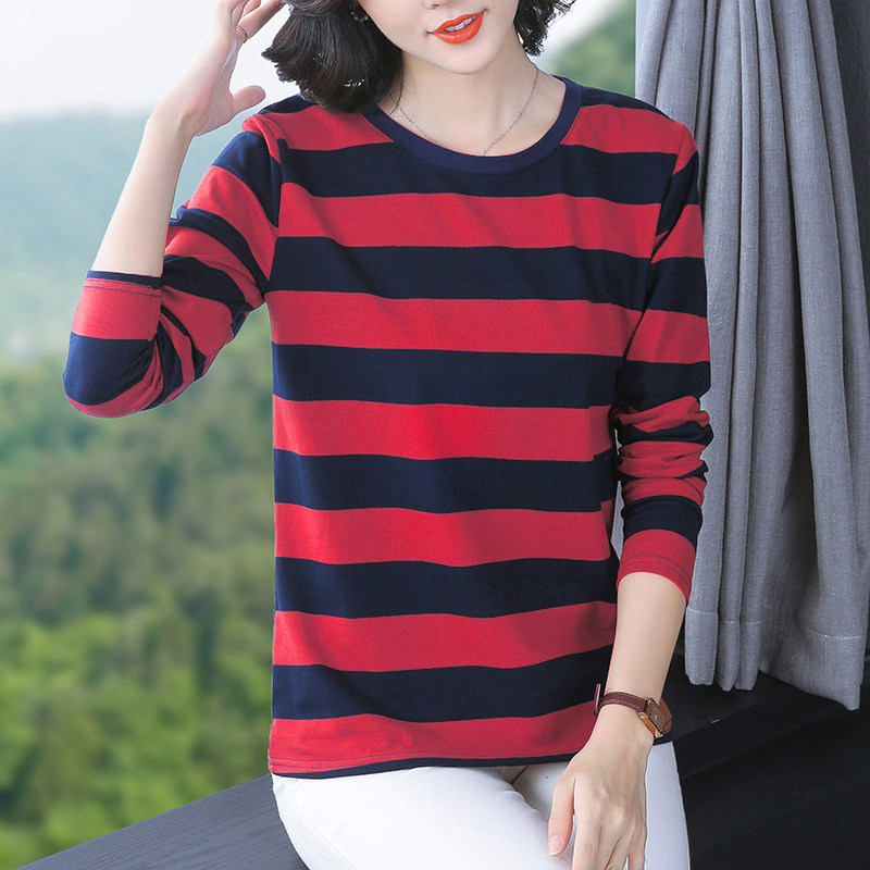 纯棉长袖t恤女士秋衣大码宽松打底衫春装妈妈中老年2026新款上衣