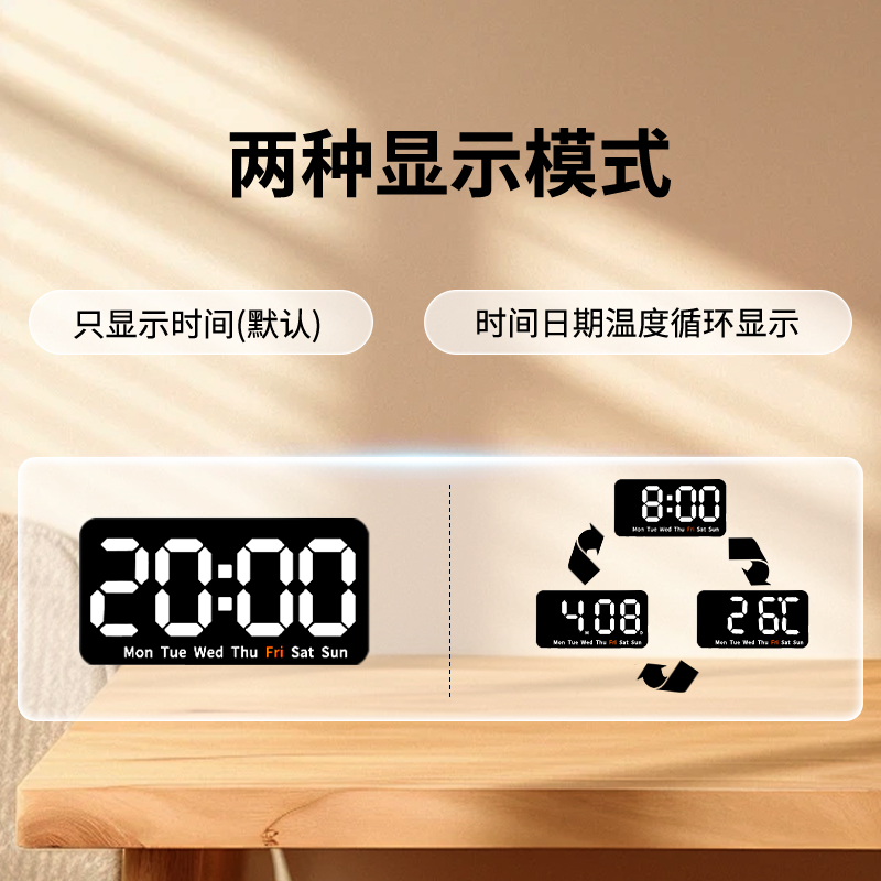 电子钟数字时钟壁挂式插电长亮led大屏时间显示器桌面钟表夜光墙