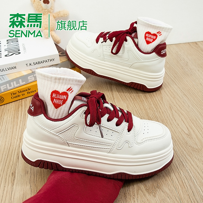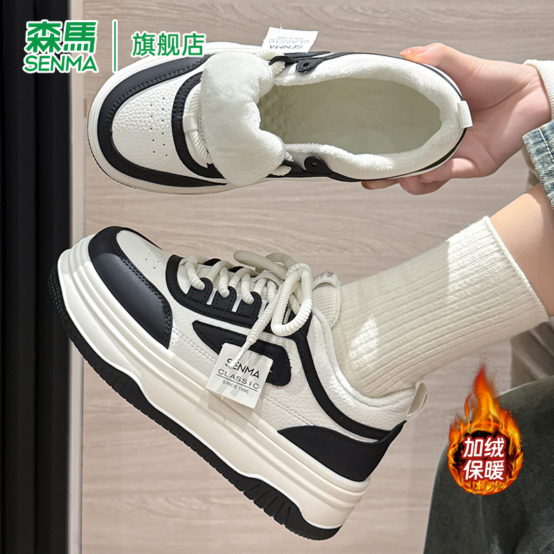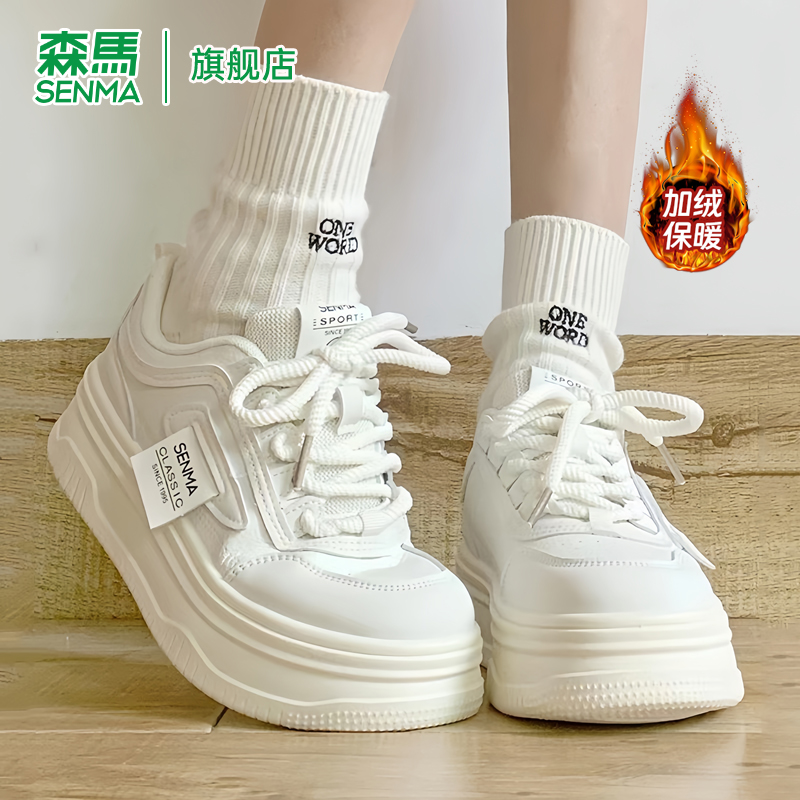 森马女鞋厚底增高保暖小白鞋女2025新款冬季加绒加厚休闲运动板鞋