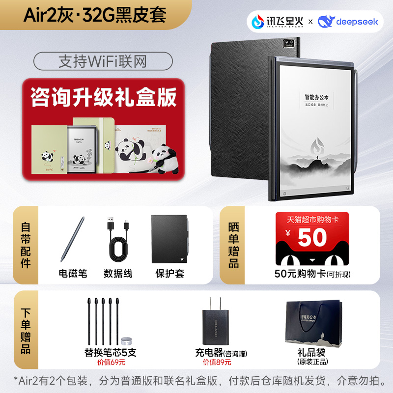 【咨询惊喜】科大讯飞智能办公本Air2Pro讯飞电子书手写笔记本会议记录墨水屏电纸书语音转文字官方旗舰店