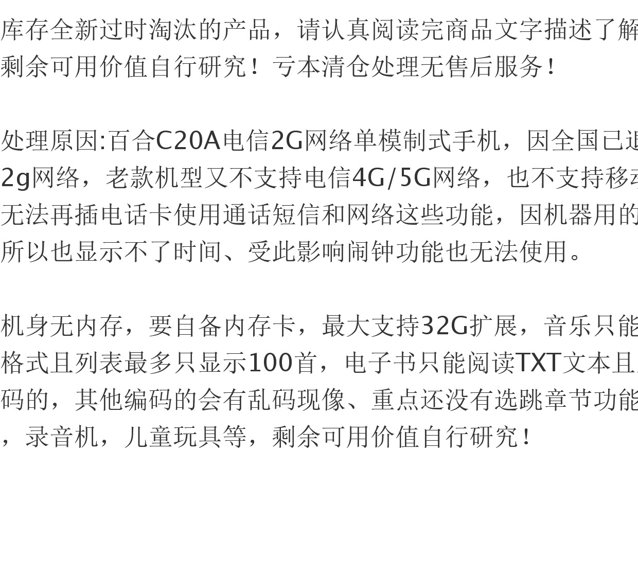 因电信2G停网亏本出过时淘汰品不能接打电话机身无内存无时间显示