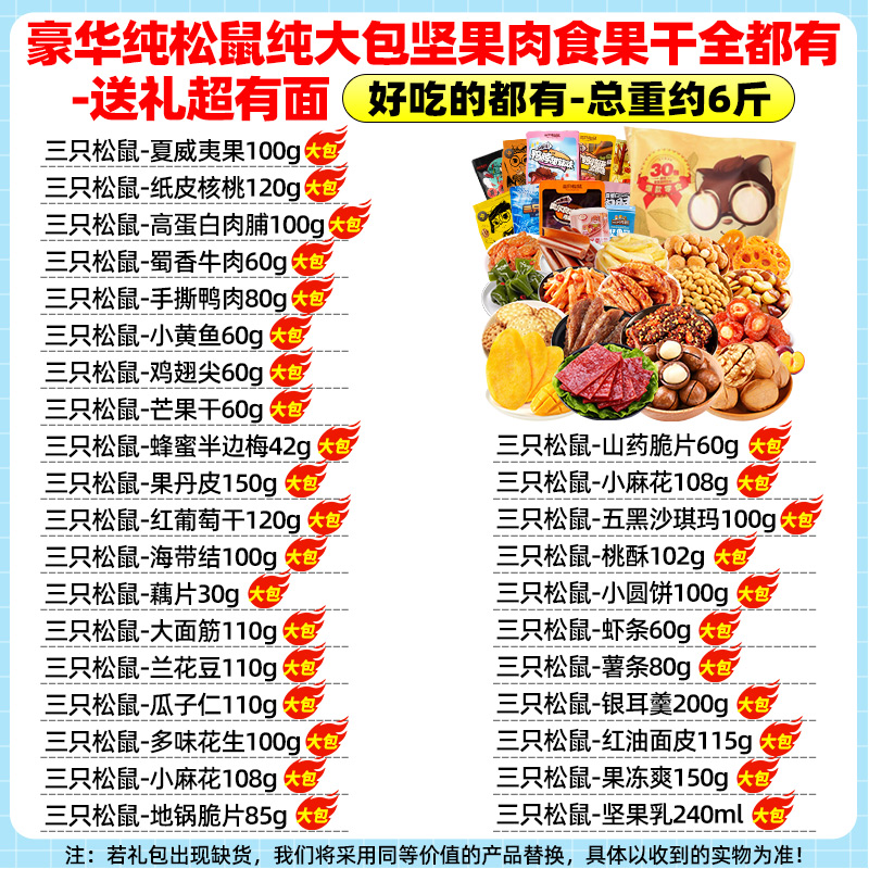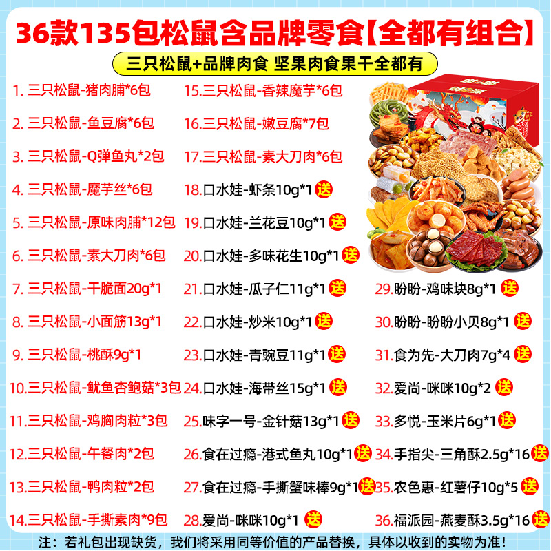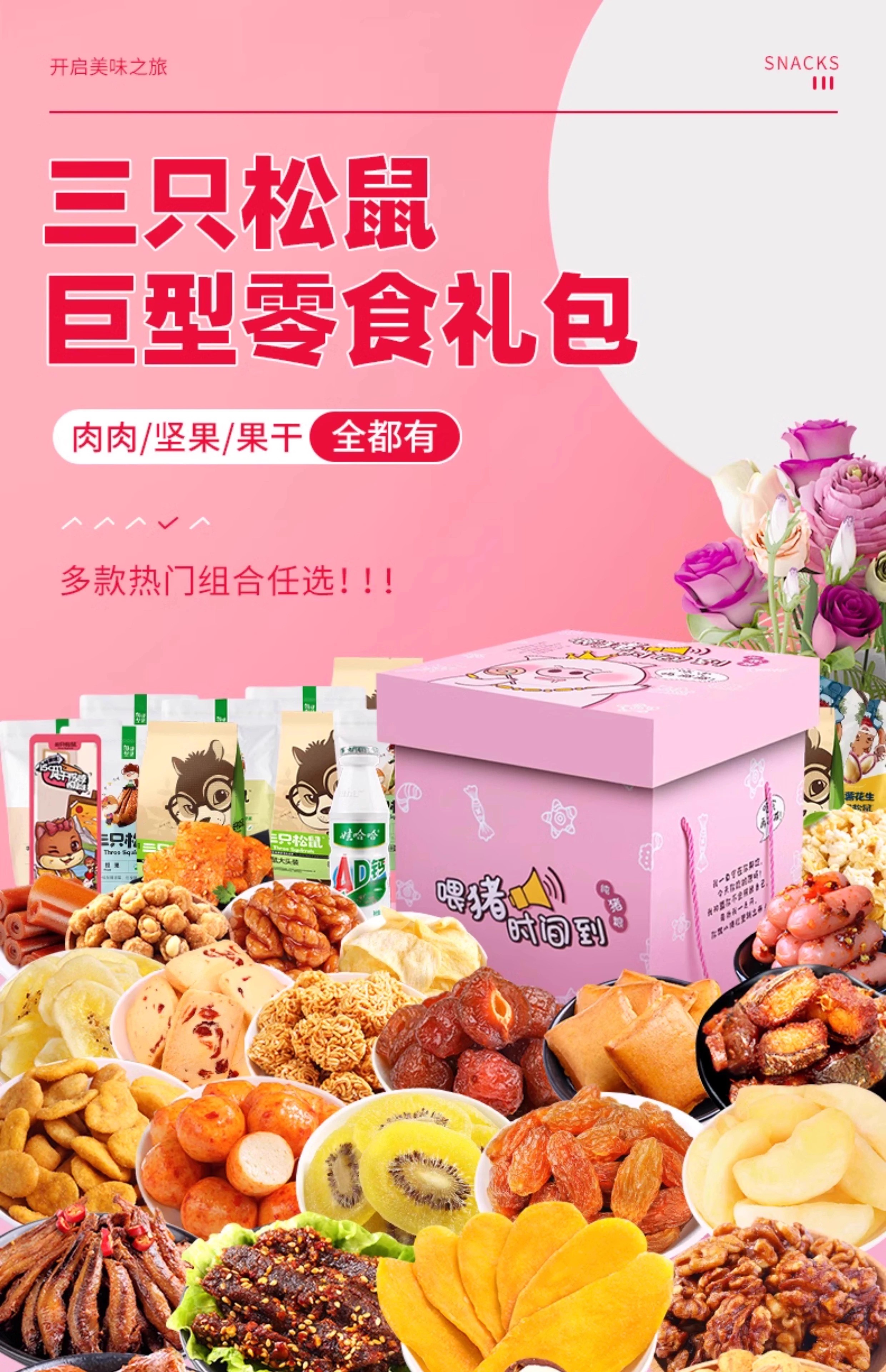 三只松鼠零食大礼包巨型送女友儿童圣诞节礼物休闲食品解馋小吃男