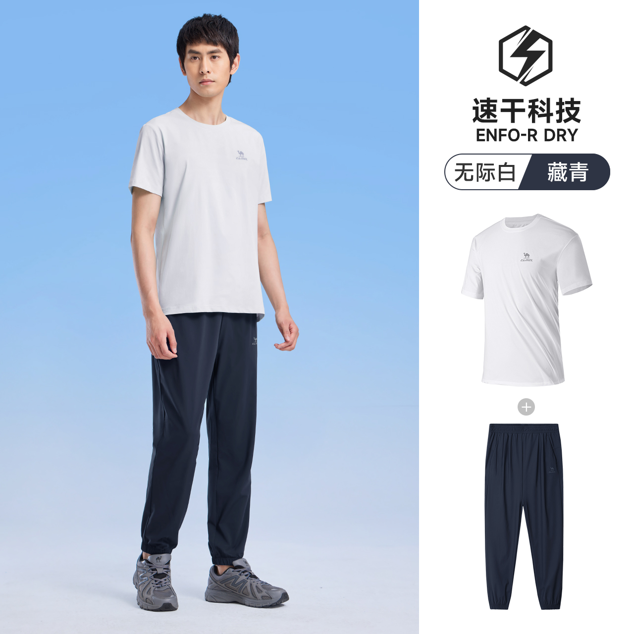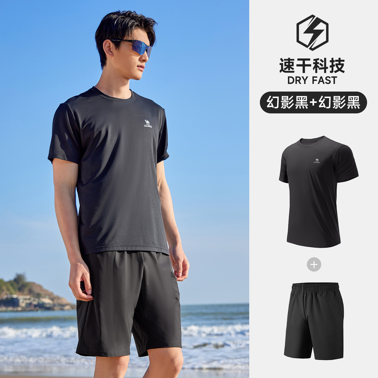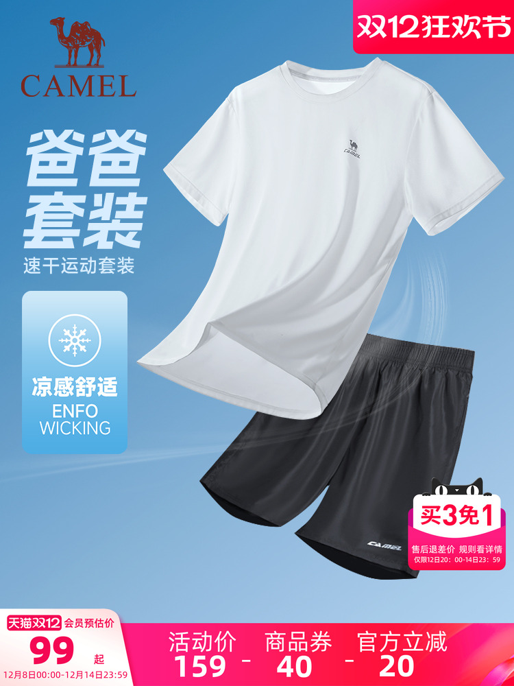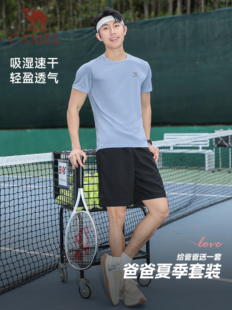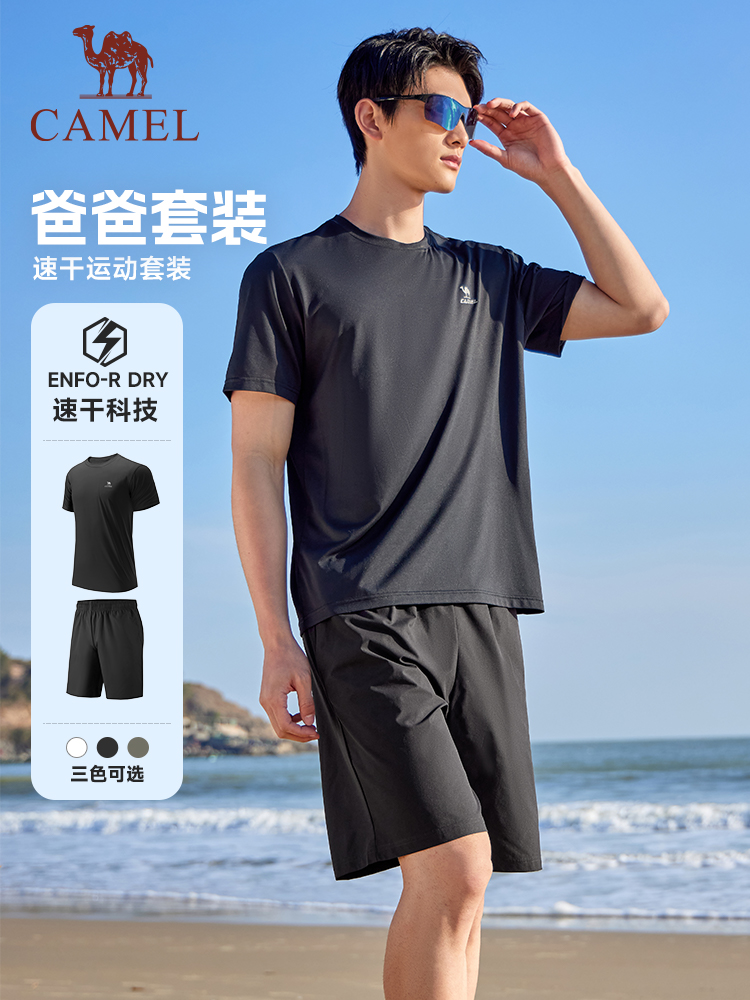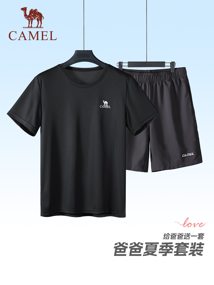骆驼运动服速干套装男士爸爸夏季速干T恤短袖短裤健身两件套女