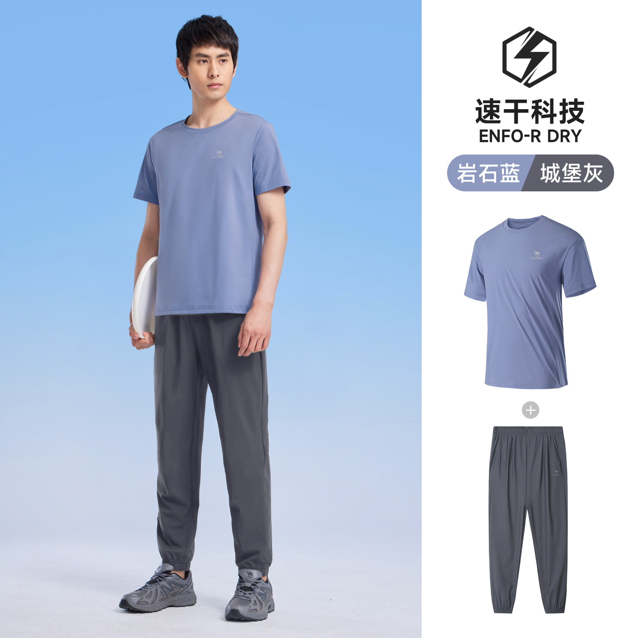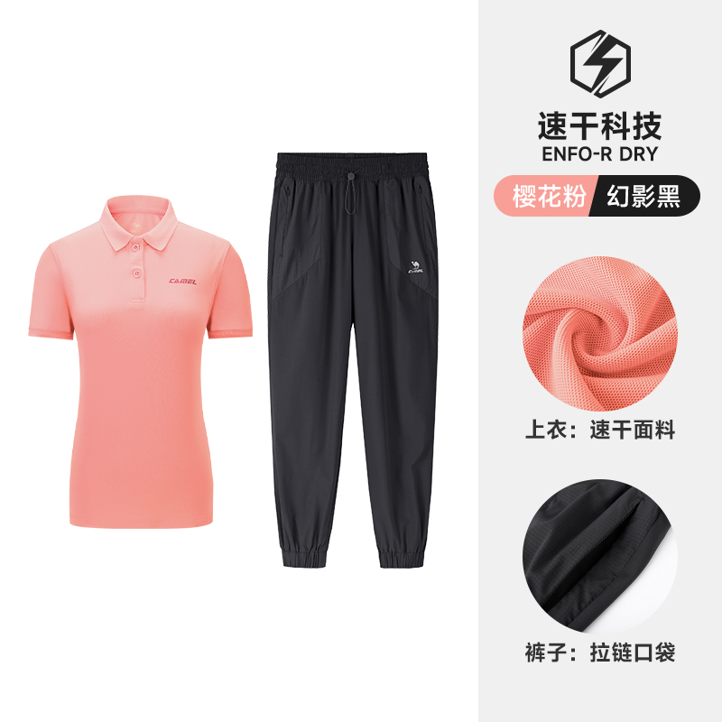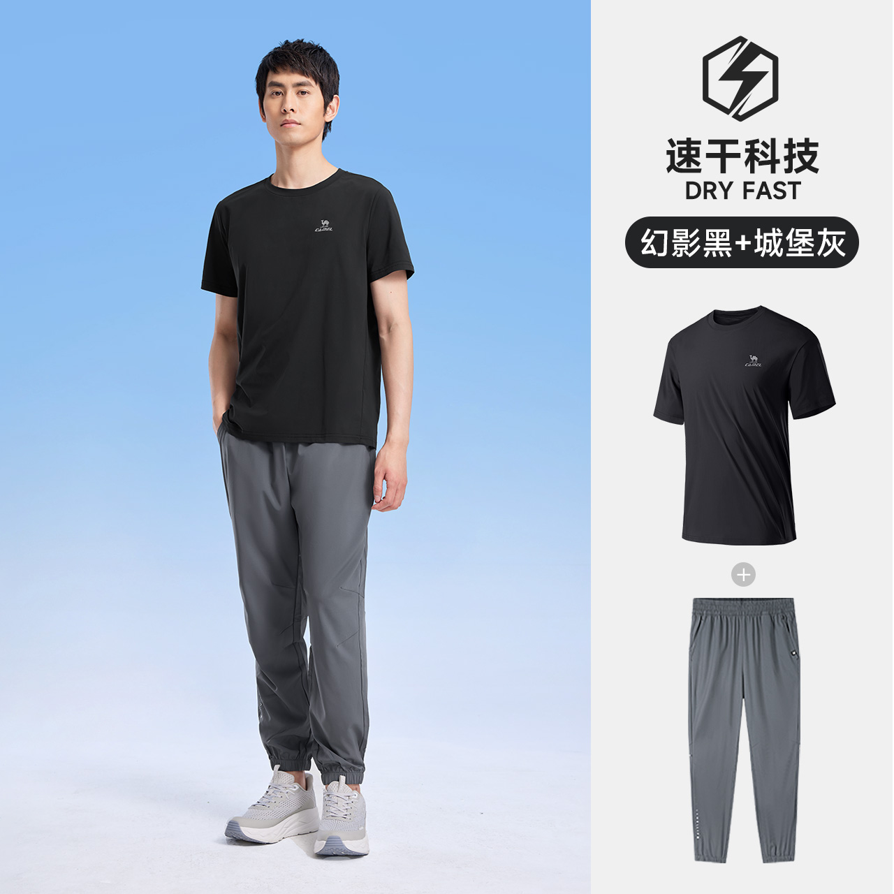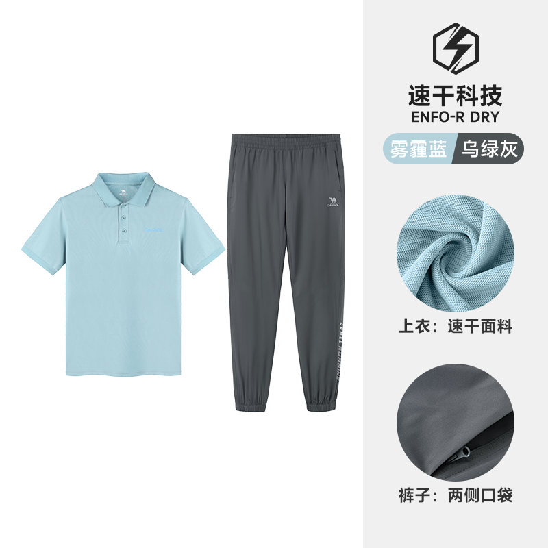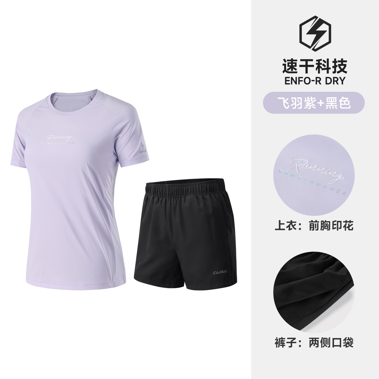 骆驼运动服速干套装男士爸爸夏季速干T恤短袖短裤健身两件套女
