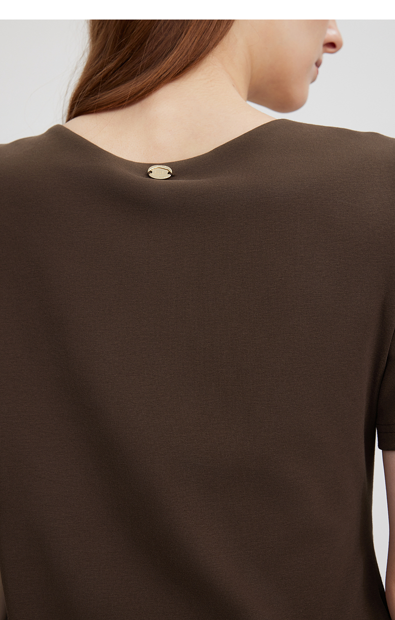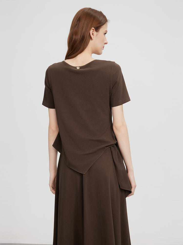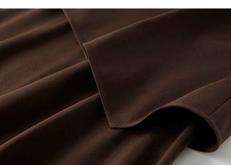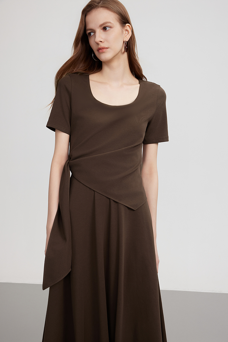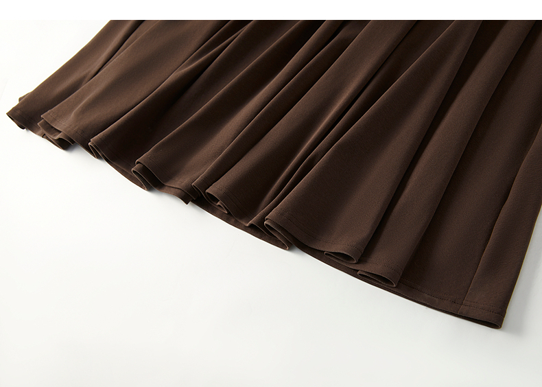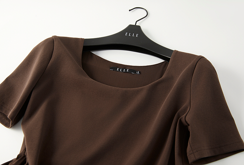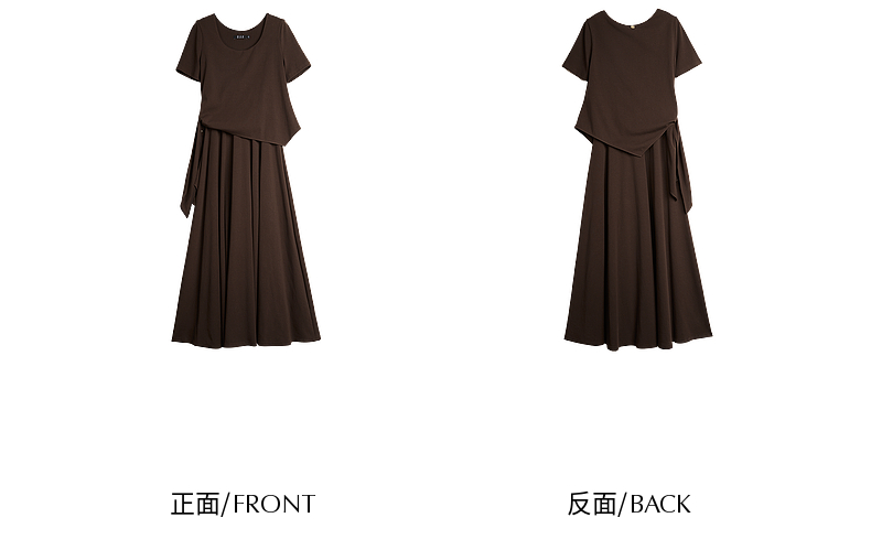 ELLE法式简约不规则连衣裙女2025夏季新款设计感咖色复古收腰长裙