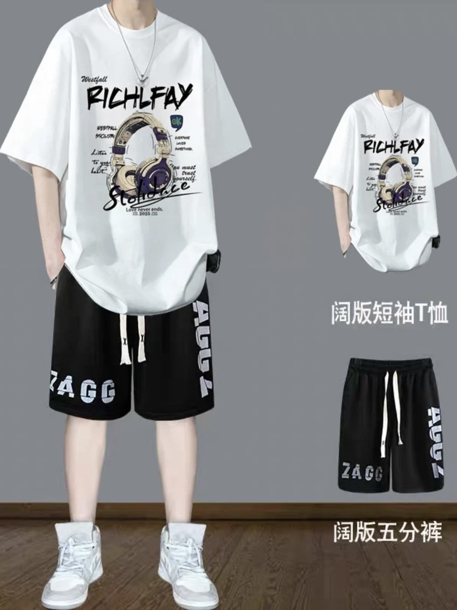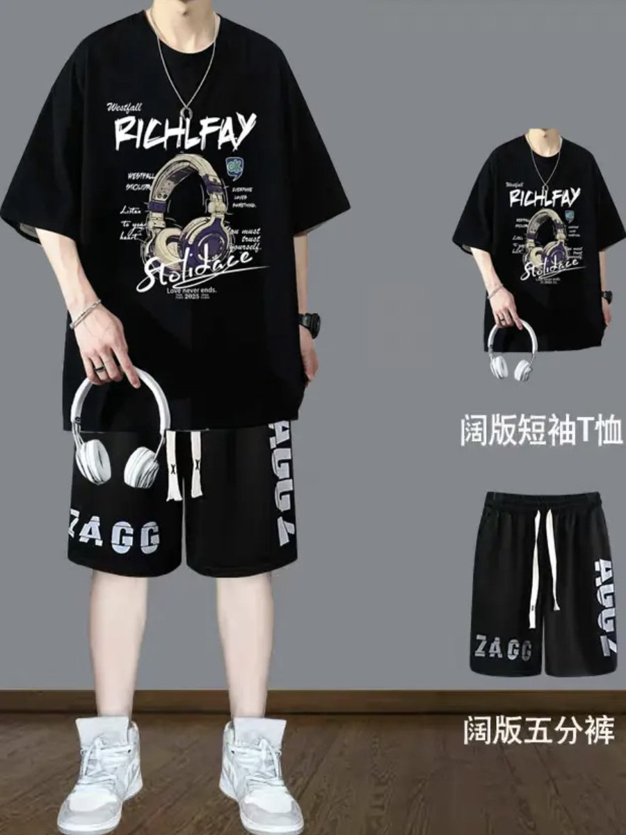 两件套装男士夏季2025新款薄款短袖t恤运动时尚休闲男生夏天短裤