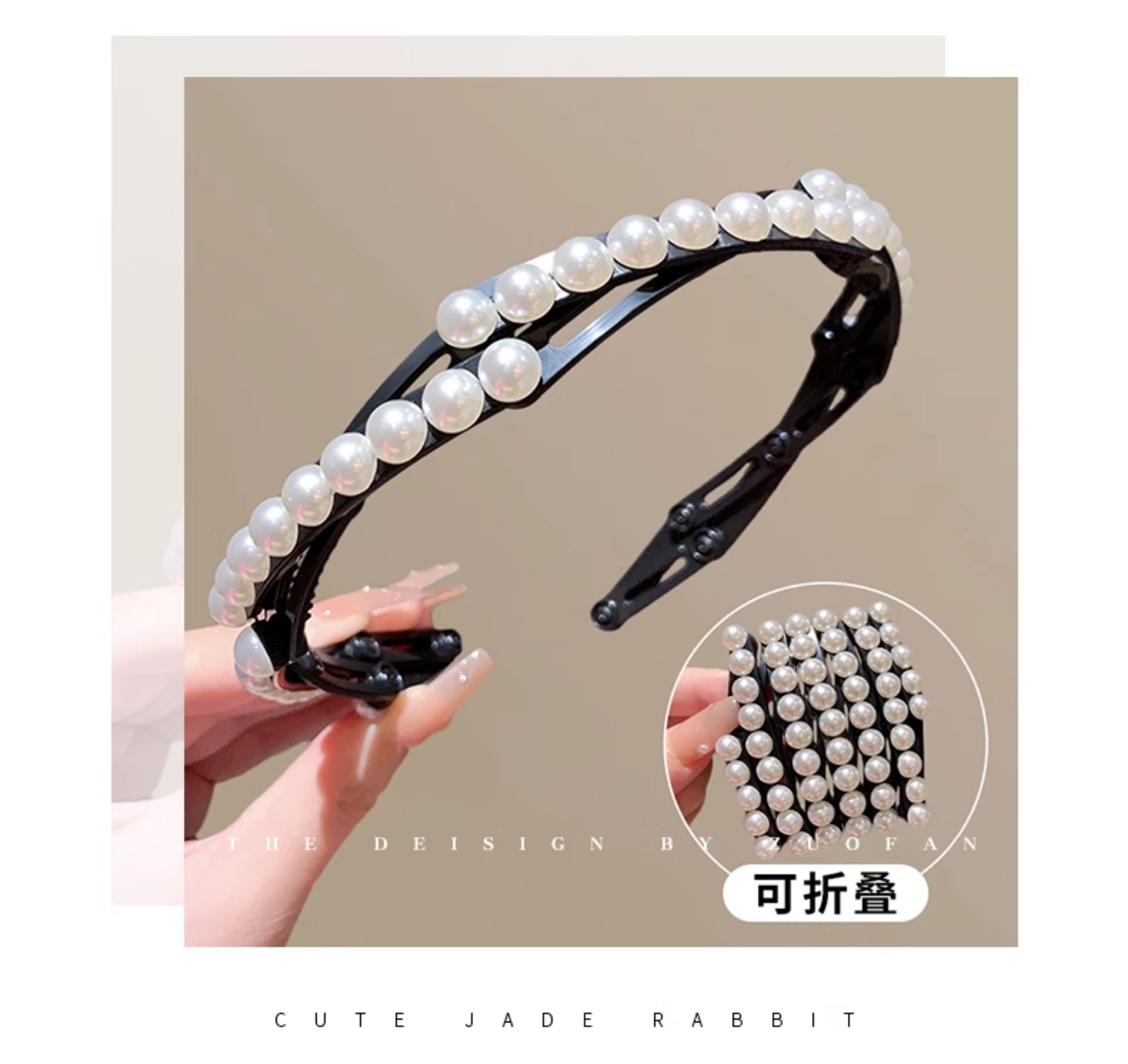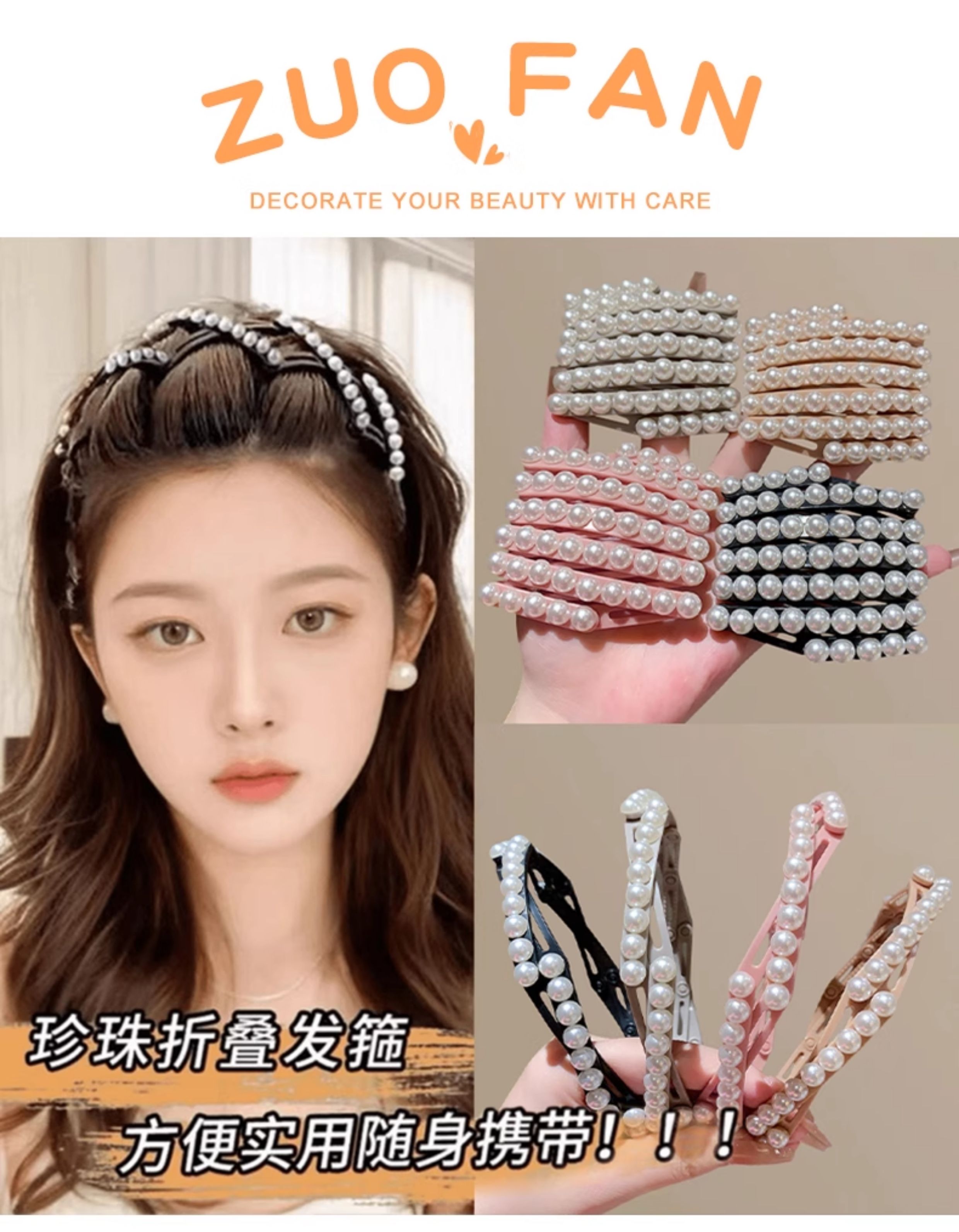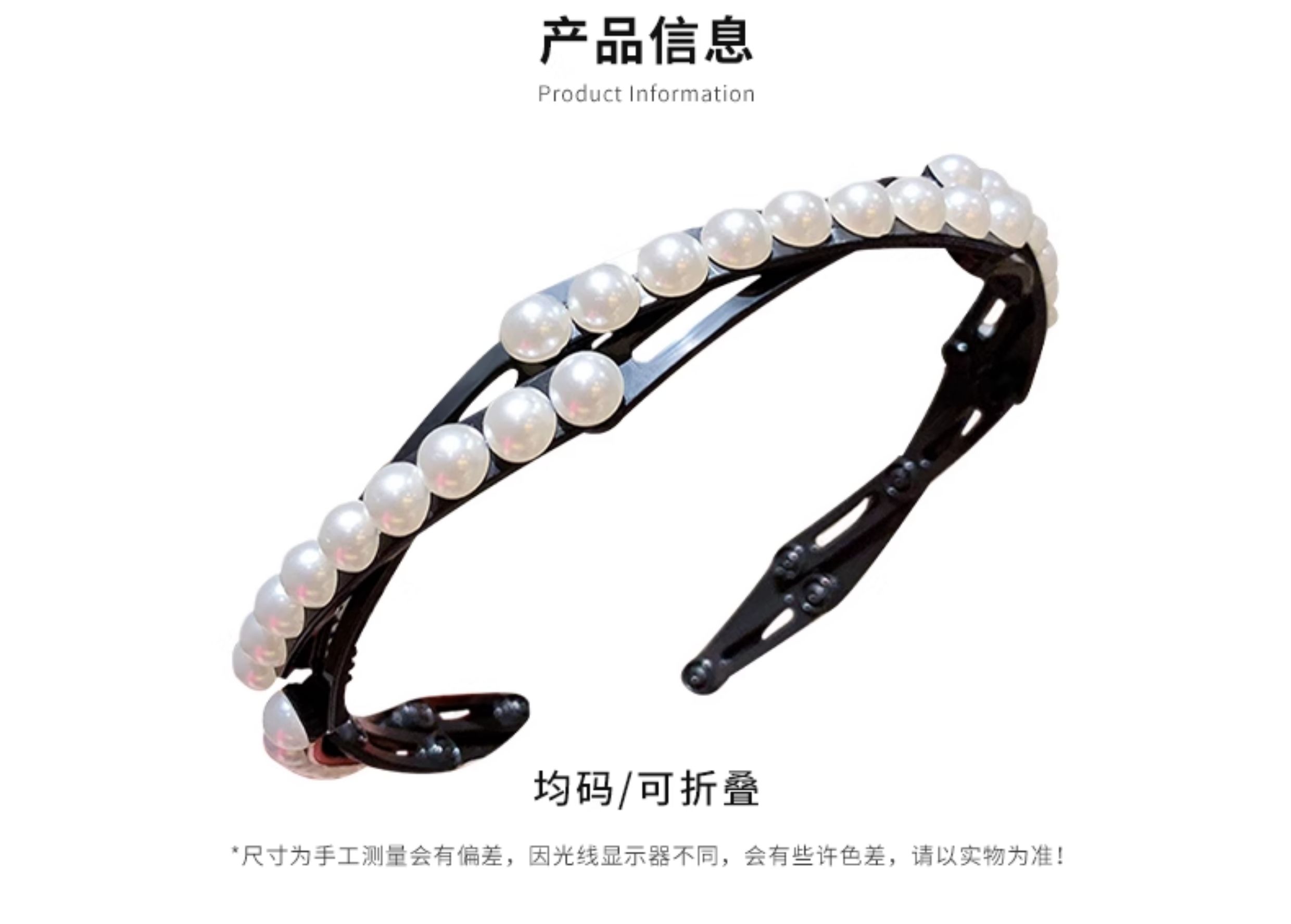 珠珠折叠发箍女2025新款洗脸头箍刘海前额碎发固定发箍夏天头饰