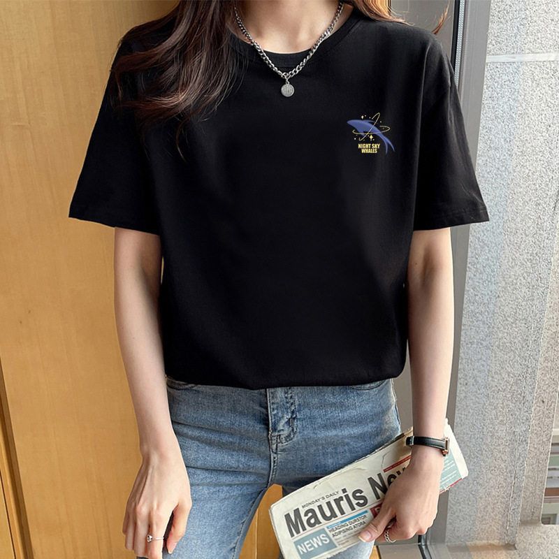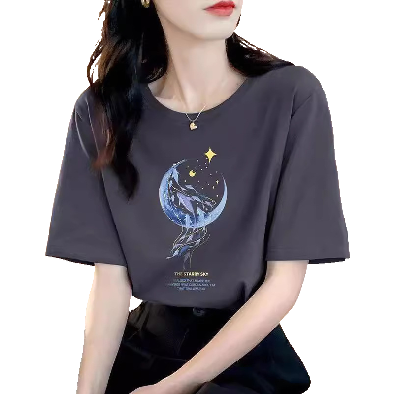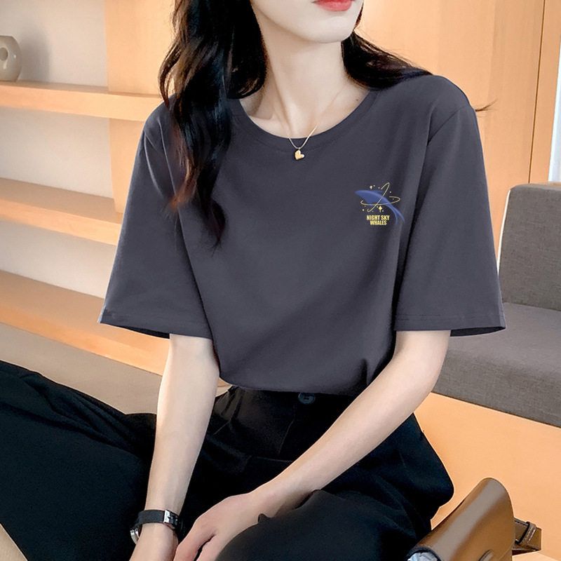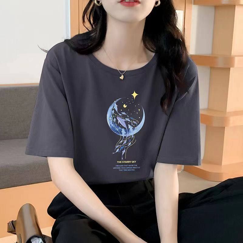 宽松纯棉短袖t恤女士夏装新款漂亮上衣设计感印花半袖女圆领夏季