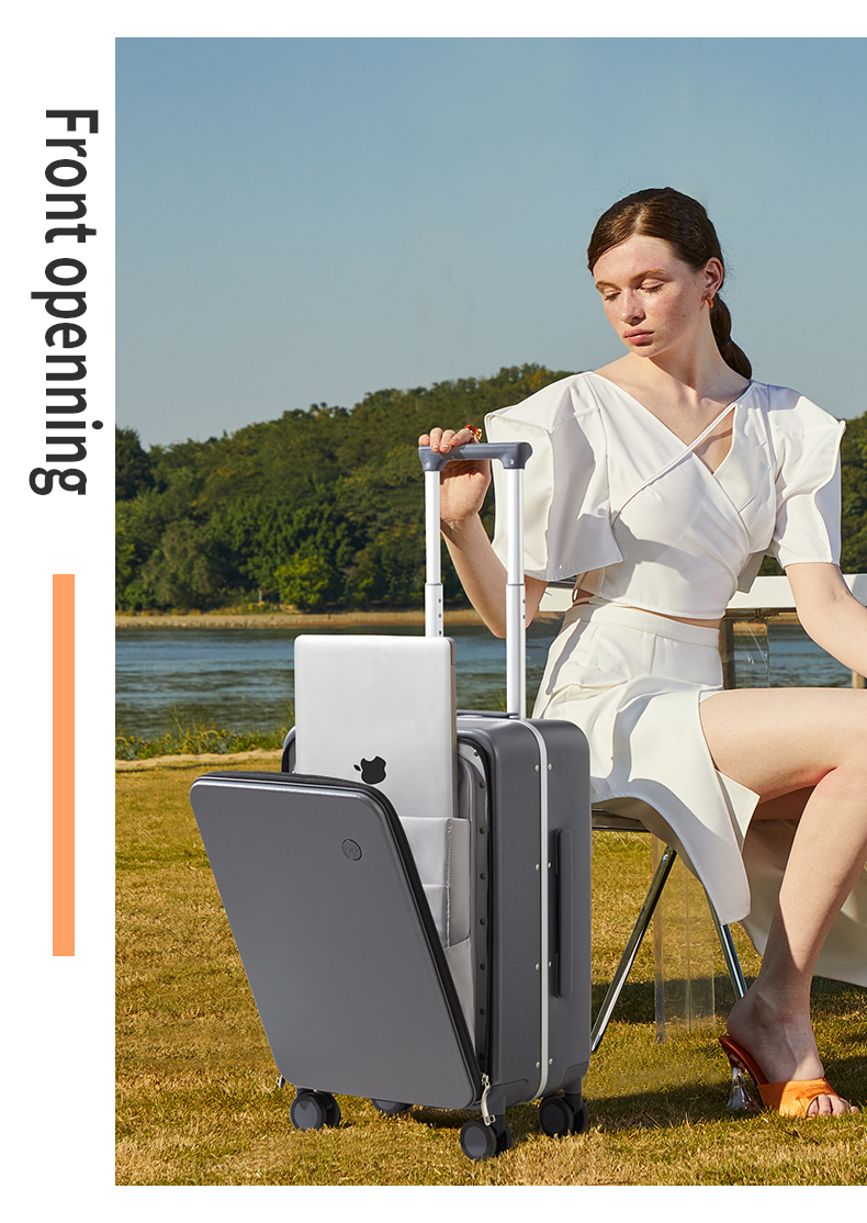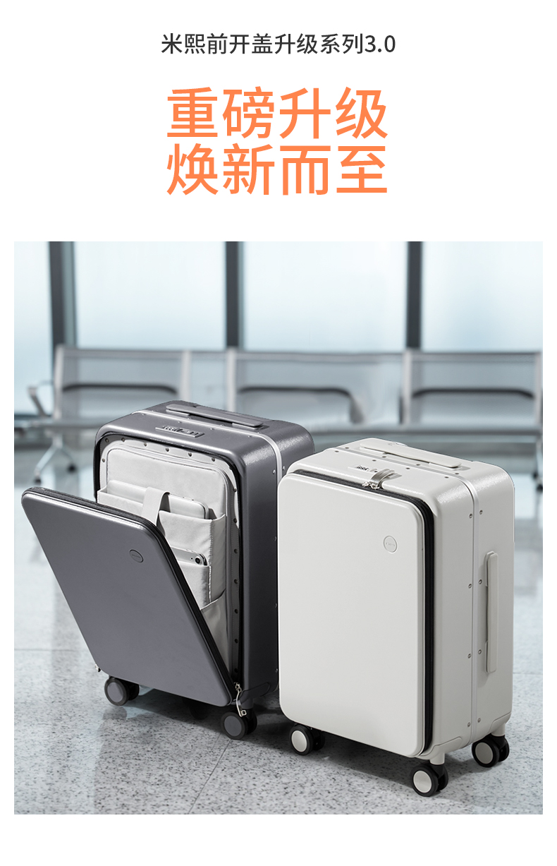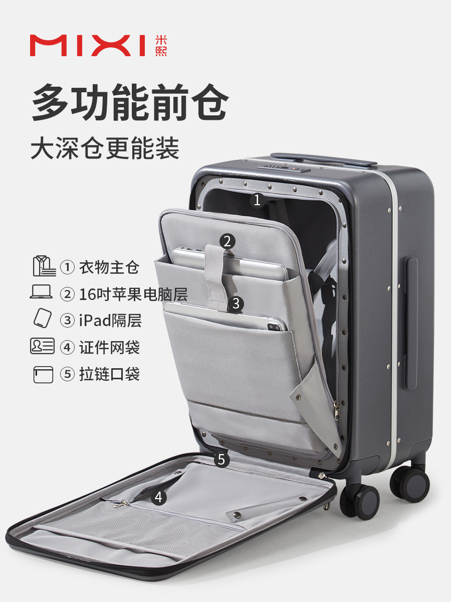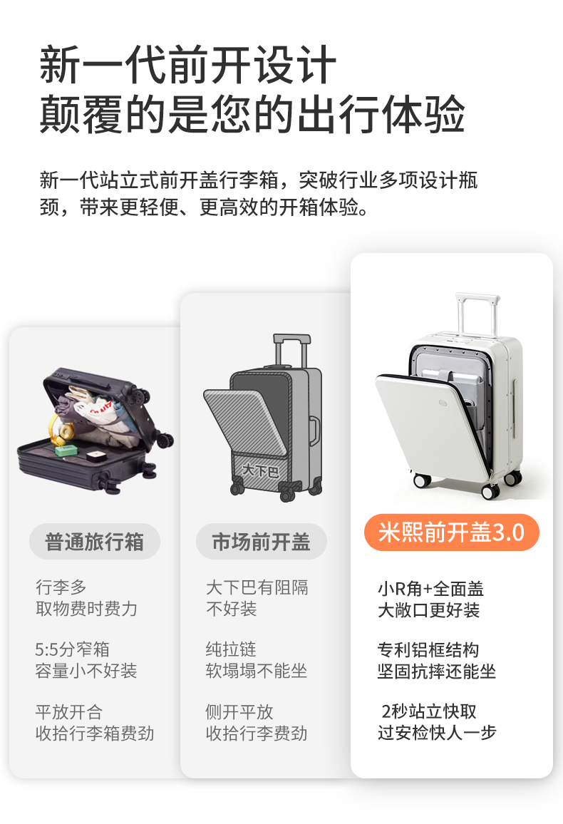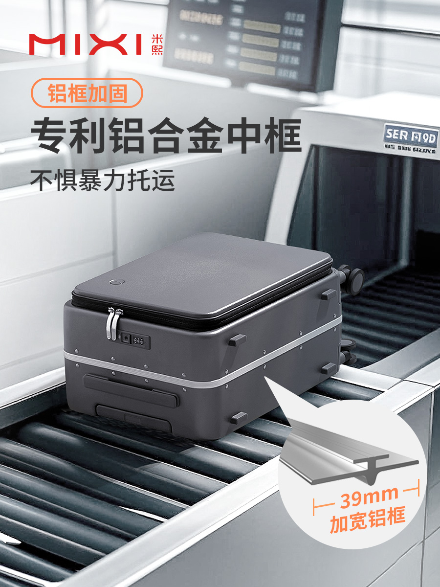 米熙前开口行李箱女2025新款18寸商务登机拉杆箱20寸出差旅行箱男