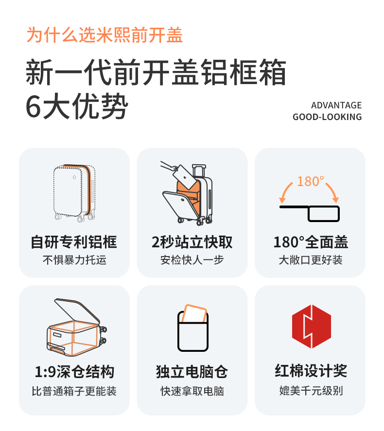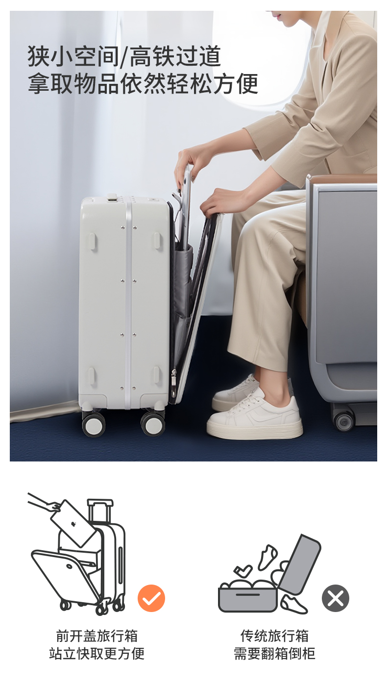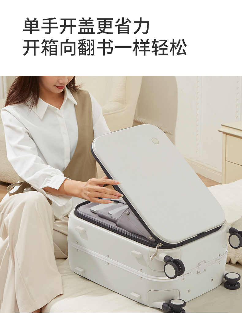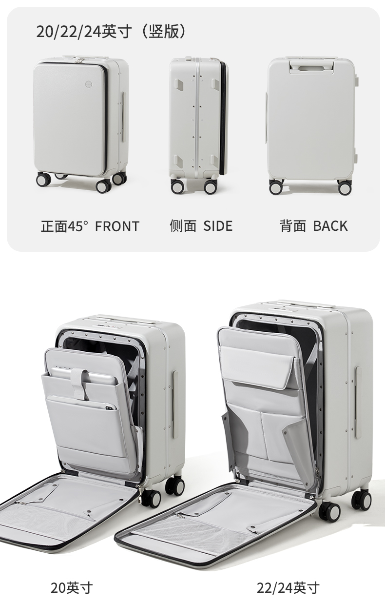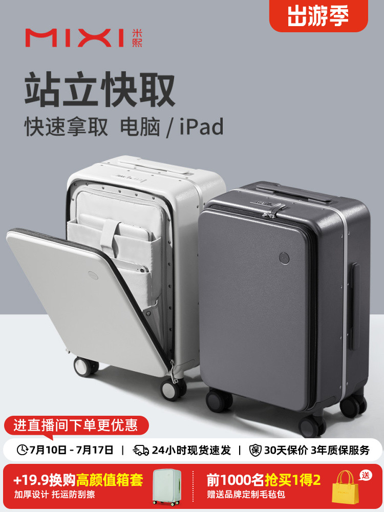 米熙前开口行李箱女2025新款18寸商务登机拉杆箱20寸出差旅行箱男