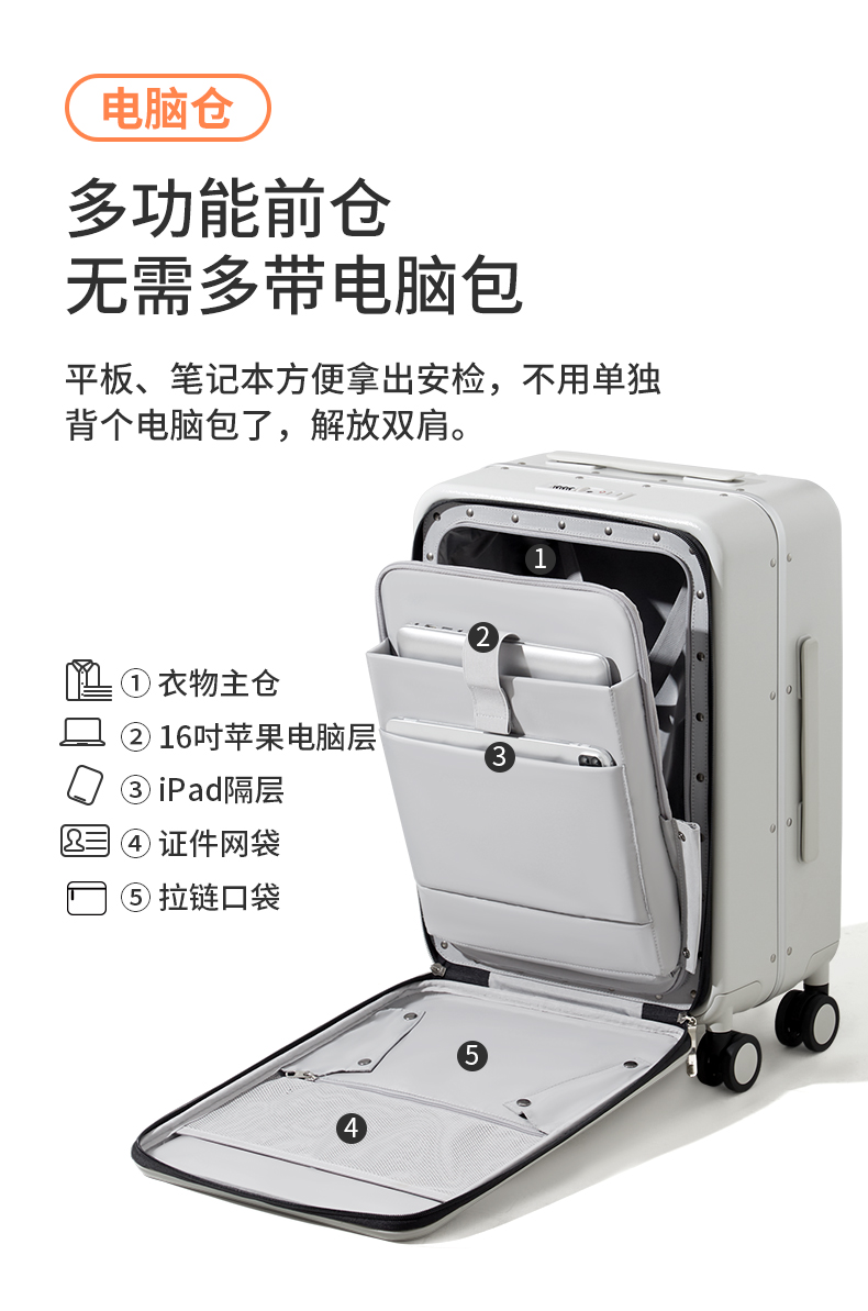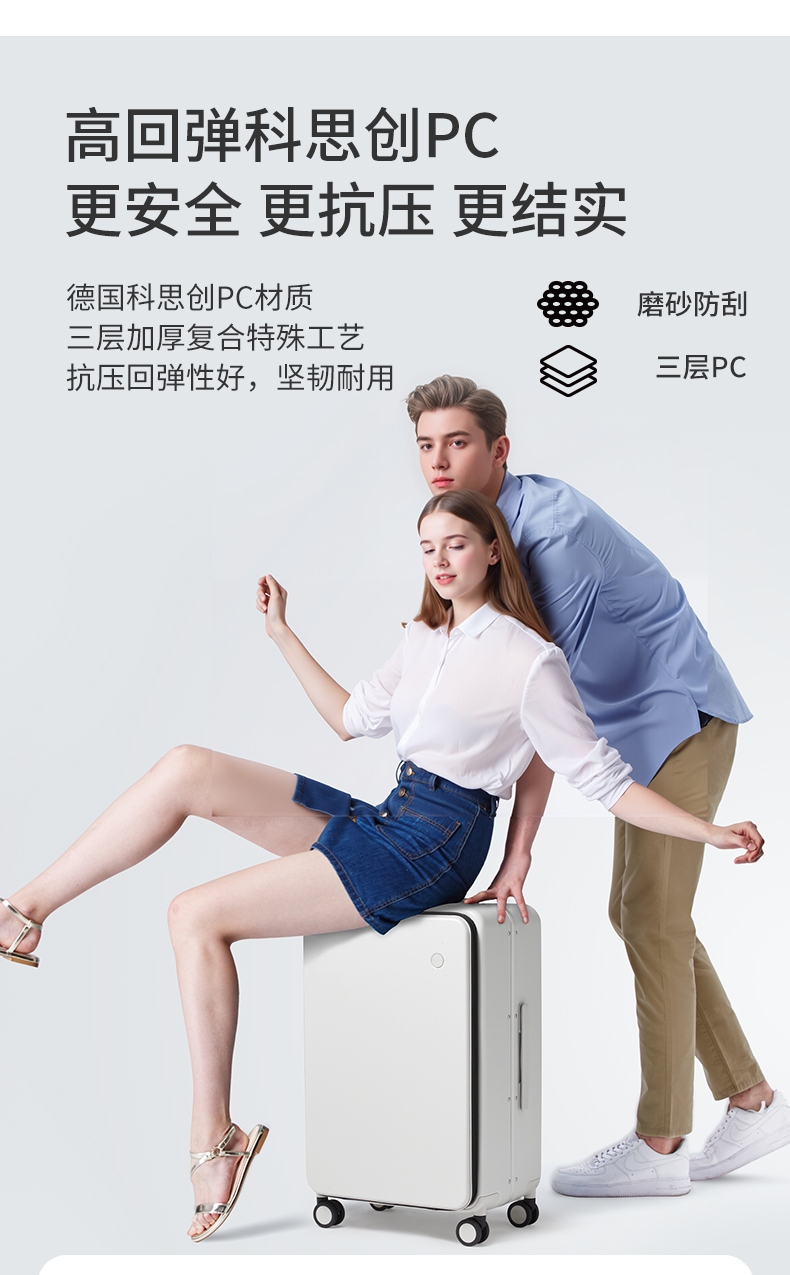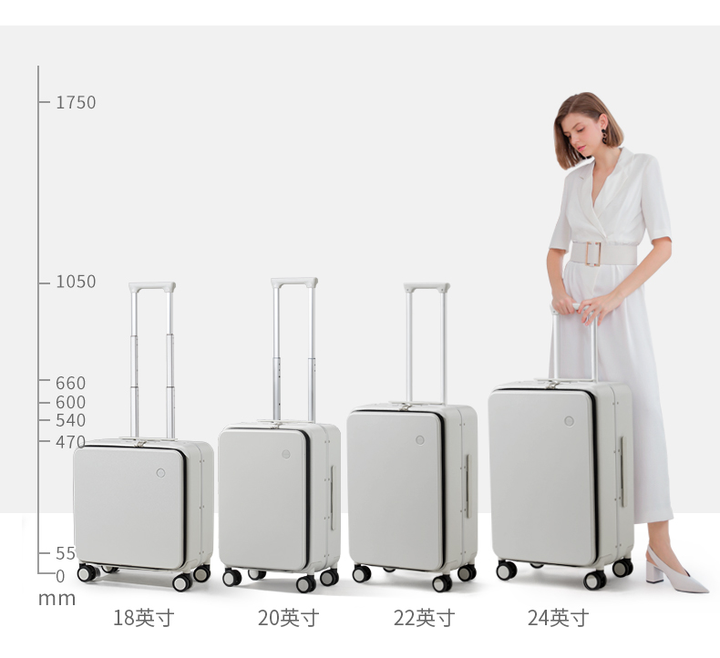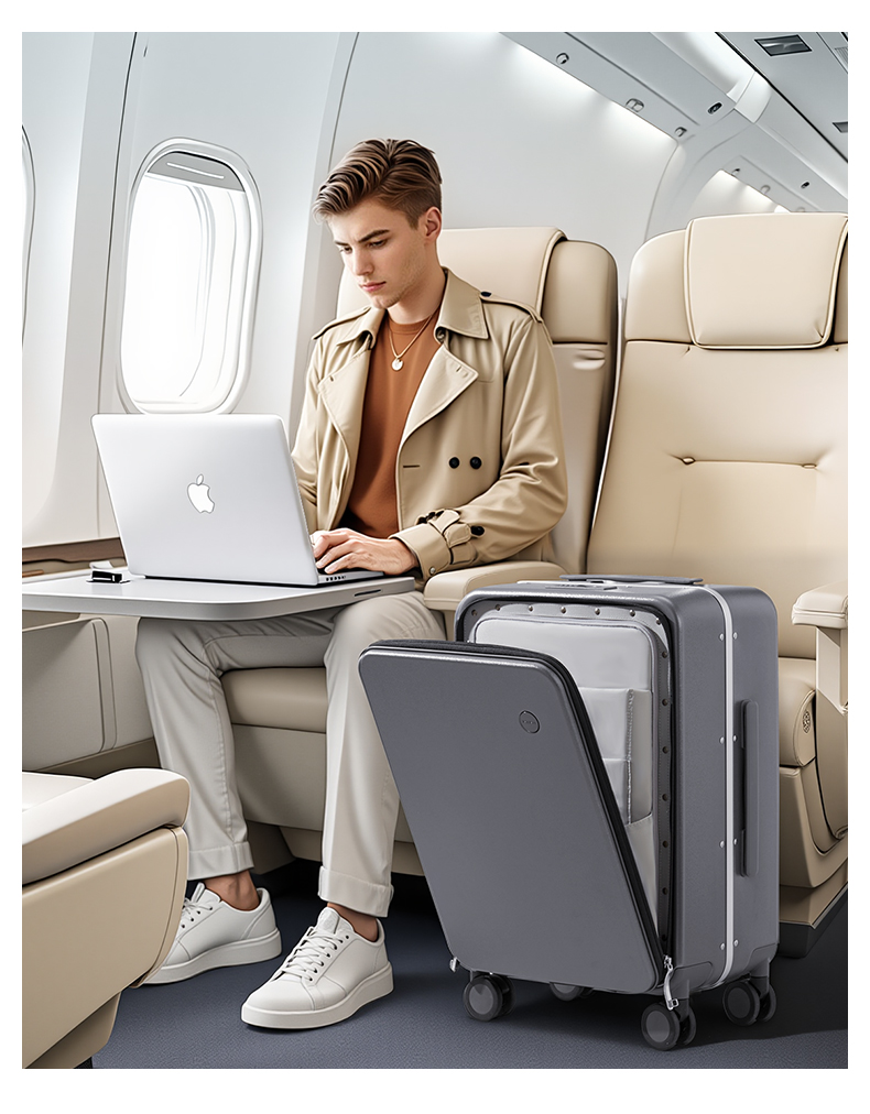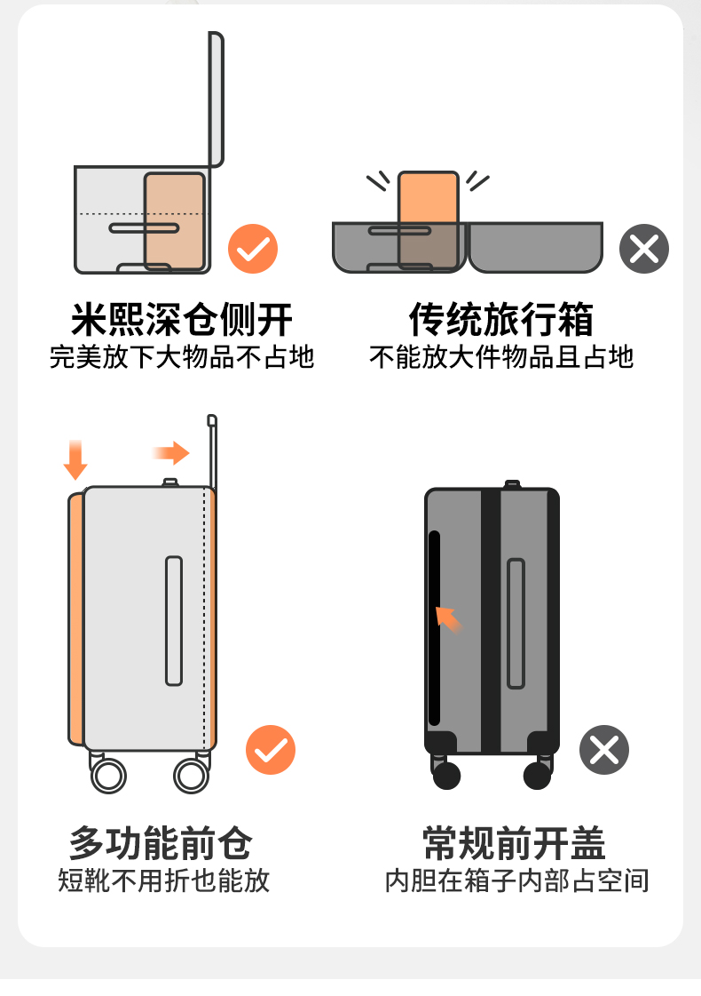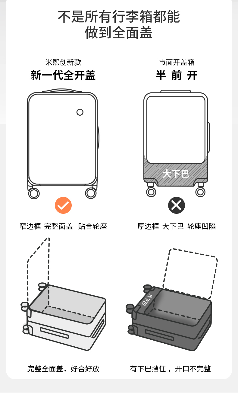米熙前开口行李箱女2025新款18寸商务登机拉杆箱20寸出差旅行箱男
