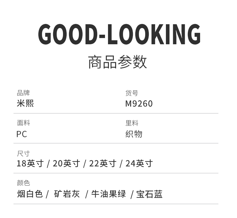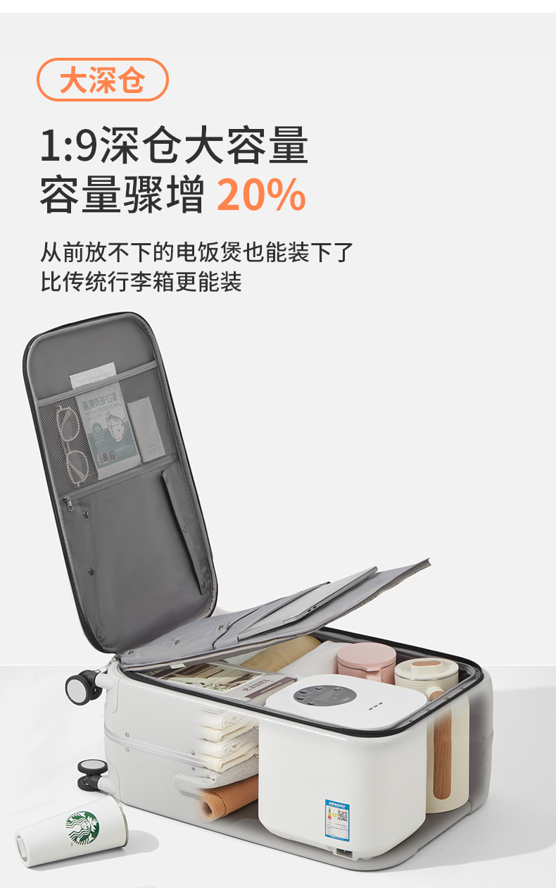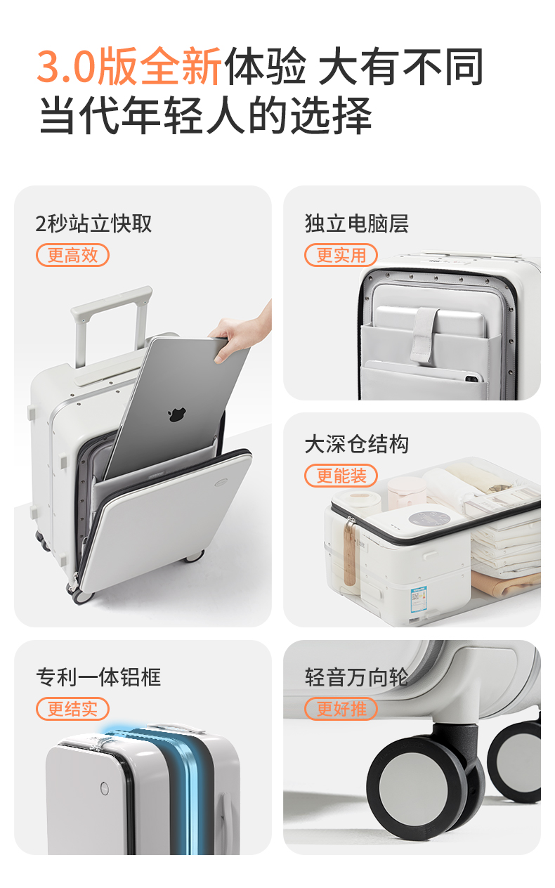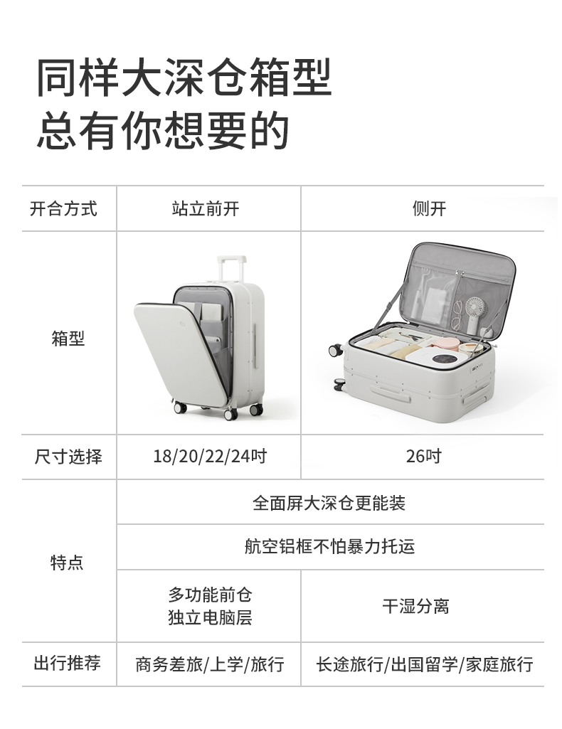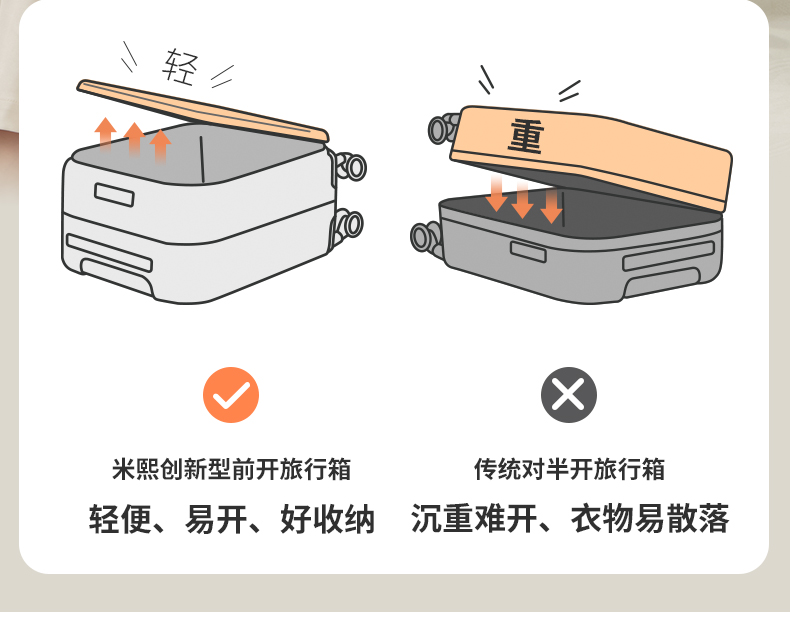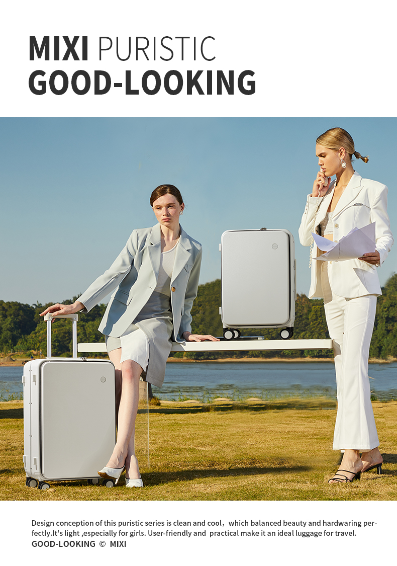 米熙前开口行李箱女2025新款18寸商务登机拉杆箱20寸出差旅行箱男